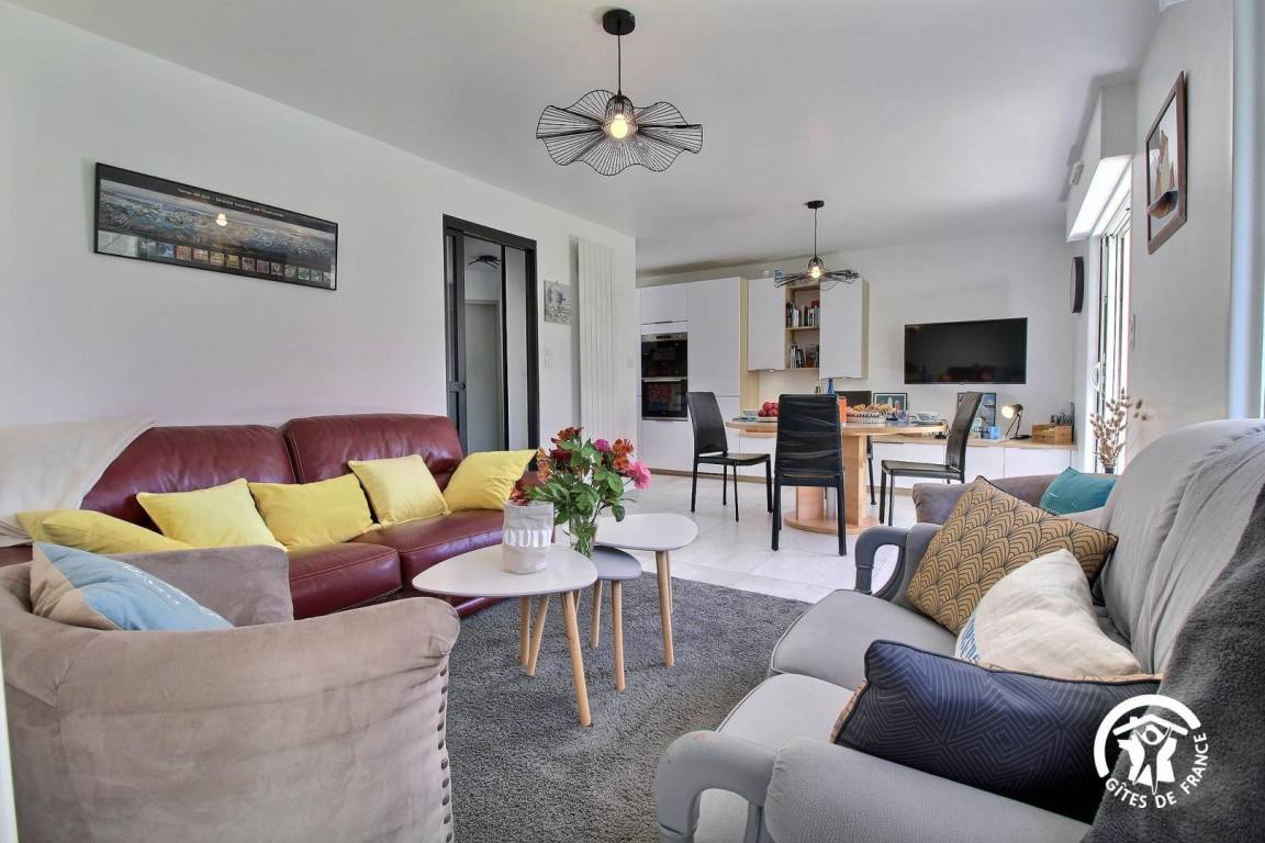 „Joli gîte moderne, fonctionnel, très bien équipé, agréable à vivre avec ses pièces lumineuses, son charmant jardin bien entretenu et son avenante terrasse où il fait bon prendre ses repas Ses hôtes nous ont réservé un accueil extrêmement chaleureux, bienveillant et soucieux de nous faire passer un merveilleux séjourPari gagné !De délicates attentions nous attendaient, choisies avec soin pour petits et grands.“