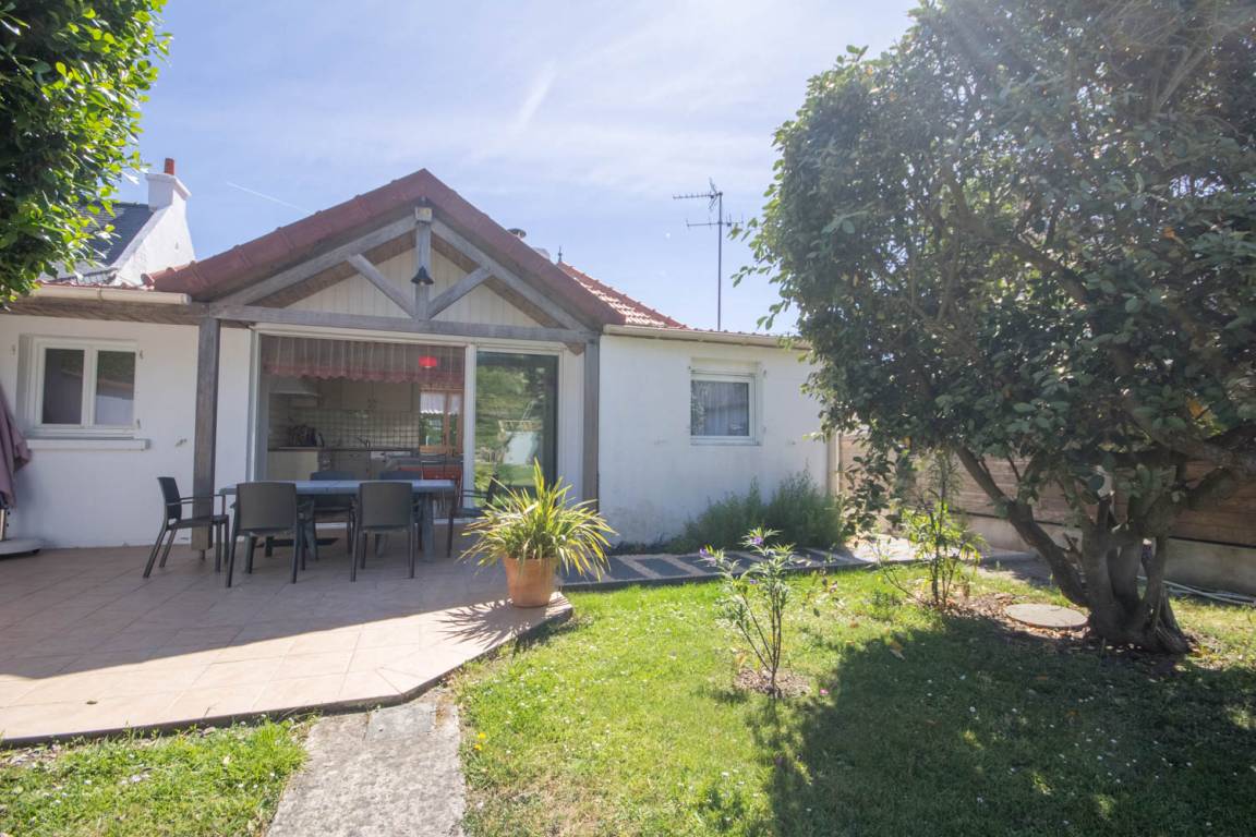 The cottage offers on ground floor: a living room with dining area and lounge, the kitchen opens on the garden, 2 bedrooms (1 double bed 140 and 2 single beds 90 including 1 crib), bathroom,toilet, laundry / boiler room with shower and toilet (ideal for beach returns). 1st floor:mezzanine bedroom (1 double bed 140, 1 crib). West facing terrace on a closed garden with trees. 2 parking lots in the courtyard, free of charge parking lots in the street .Extra charges for heating.