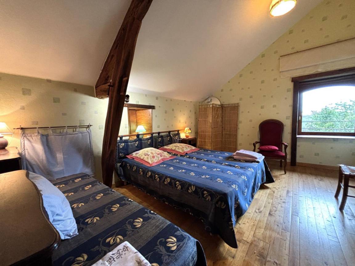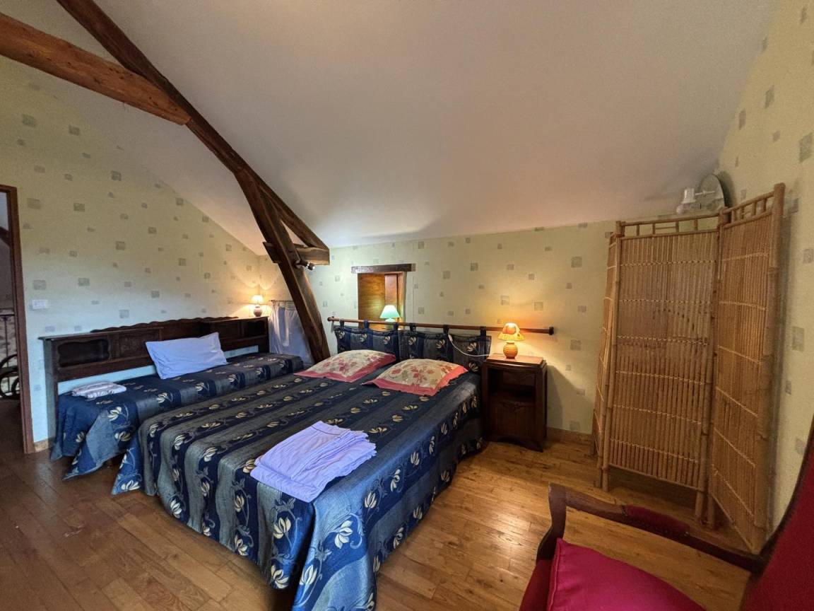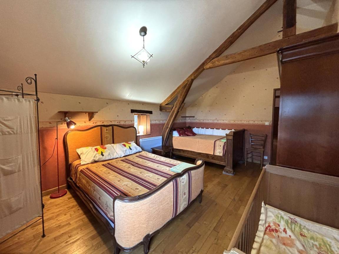 Der Charme des Alten und der Komfort des Modernen ermöglichen es Ihnen, in dieser geräumigen Gîte den Bourbonnais-Bocage mit Blick auf die Charolais-Herden zu schätzen. Erdgeschoss: geräumiges Wohnzimmer mit offener Küche, Aktivitätsraum, Duschbad (Dusche/WC), Spa, Schlafzimmer 1 gekennzeichnet Tourismus und Handicap (1 Doppelbett), Duschbad (Dusche/eigenes WC). Schlafzimmer 2 im Obergeschoss (1 Doppelbett, 1 Bett 110, 1 Kinderbett, 1 Reisebett). Schlafzimmer 3 (2 Einzelbetten 80, 1 Kinderbett). Schlafzimmer 4: (1 Doppelbett und 1 Einzelbett). Schlafzimmer 5 (2 Einzelbetten von 80, 1 Einzelbett). Badezimmer (Badewanne) und Duschbad (Dusche); 2 separate Toiletten. Das Mezzanine/Büro bietet zusätzlichen Entspannungsraum. Elektrische Heizung durch Wärmepumpe und Kühlsystem im Sommer. Eingezäuntes Waldgebiet von 3000m² mit Kegelbahn und 9-Loch-Minigolf; Terrasse mit Pergola. Möglichkeit zweite gite 8 Pers. Promo - 10% an Wochenenden außerhalb der Schulferien, Ostern, Himmelfahrt und Pfings