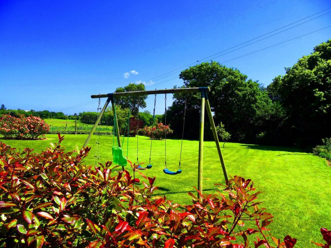 Haus auf einem Anwesen mit insgesamt 3 Gîtes bei dem Wohnhaus der Eigentümer. EG: Wohnraum mit Kochecke, Bad, sep. WC. 1.Stock : Doppelzimmer, Zweibettzimmer sep. WC. E-Heizung. Wi-Fi. Eigenes Gärtchen, eigene Terrasse, Gartenmöbel, Grill. Grosser, gem. Gartenmit Schaukel.