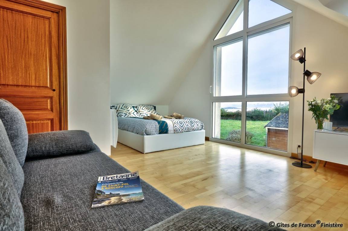 „Le gîte est bien équipé, il y a tout pour y passer un excellent séjour. La décoration est jolie et on se sent rapidement chez soi. Le jardin est bien aménagé et bien orienté. La literie est confortable et on sent bien que. la propriétaire est attentionnée envers les locataires avec les petits cadeaux d'accueil, les équipements, les jeux de société, le matériel à disposition dans le cabanon etc...Situé idéalement dans un petit bourg tranquille avec accès à la mer au bout du GR34 qui passe devant la maison. Tous commerces à st pol de Léon à environ 3 km. Et de belles ballades au alentours. La vue sur la baie de carentec de la chambre du haut est superbe pour observer le couché et le levé du soleil. Bref nous avons passé un excellent séjour. Vive la Bretagne !Merci.“
