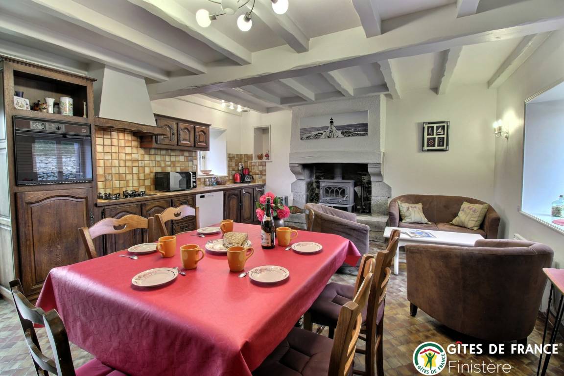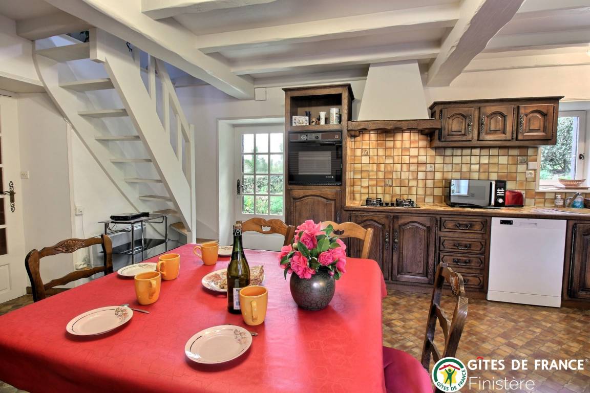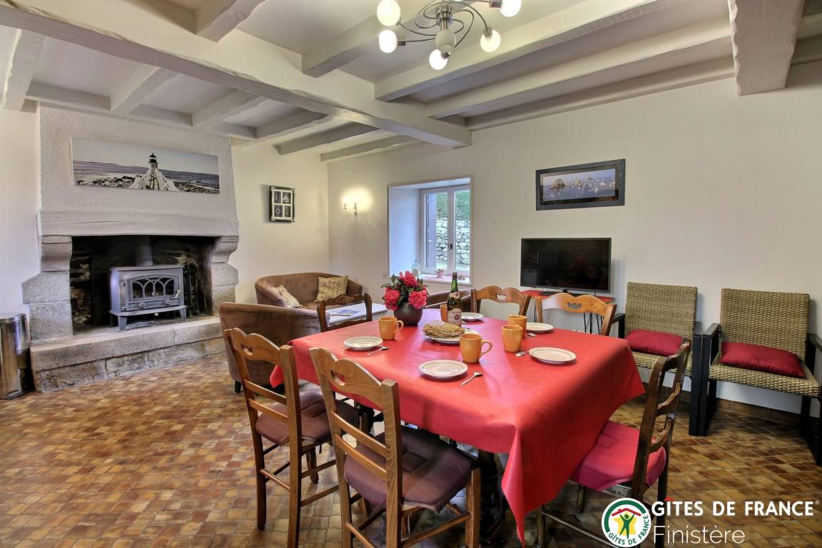 „Très bel accueil de nos propriétaires cultivateurs qui nous ont fait profiter de leurs merveilleux produits locaux. Maison bretonne typique et fleurie au calme dans la campagne bien que près des commerces Vous pouvez marcher dans la campagne environnante pour admirer le coucher de soleil la maison présente tout le confort et les commodites et elle est très agréable fraîche en cas de forte chaleur Très bonne literie pour notre part Nous étions 6 et nous avons passé un très bon séjourMerci encore à madame et monsieur Le Moal pour leur accueil“