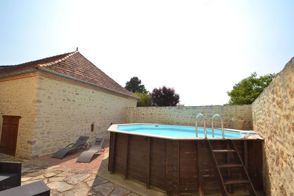 In einem kleinen Dorf, das ehemalige unabhängige Bourbonnais Bauernhaus renoviert mit Authentizität (Balken und Mauerwerk) und zeitgenössische Harmonie. DRK/Stock: Wohnzimmer, Küche, Woodstove, 1 Schlafzimmer (1 Bett 160 x 200 cm), Dusche mit wc. Stock: 1 Schlafzimmer (1 Bett 160 x 200 cm), Bad, 1 Schlafzimmer 2 Betten 90 x 200), Bad, wc, 1 Bad-Spiele-Bibliothek (1 Bett 80 x 180). Bo. Electric. Tel. Innenhof Innenhof mit Swimmingpool oberirdisch sans Vis À Vis schließen Wände. Boden Sie auf der Rückseite des Hauses mit Terrasse, Liegewiese mit Blick auf die Hügel. Festival der Gannat im Juli-August.