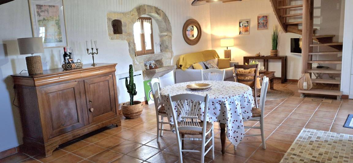 „Accueil très sympathique de la propriétaire toujours prête à rendre service. Le gite est abondamment doté, il est difficile de prendre les propriétaires en défaut sur ce plan. Tout est de qualité, vaisselle, électroménager, literie... Le contemporain et l'ancien s'allient pour rendre l'atmosphère chaleureuse. Les balades nous offrent des paysages fabuleux. Pour des citadins, les routes restent néanmoins un peu étroites. On doit rester vigilants, ce qui nous laisse le temps d'admirer les causses du Quercy. Nous recommandons ce gite à tout ceux qui aiment le calme. Merci encore pour cette semaine de rêve. Annick et Richard“