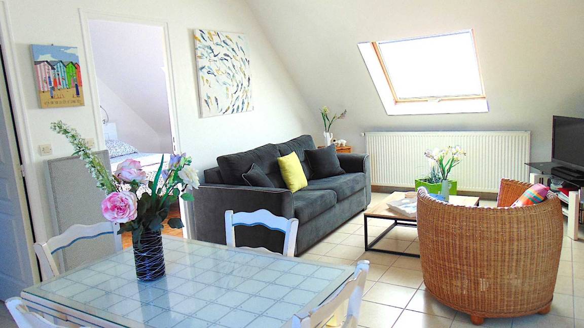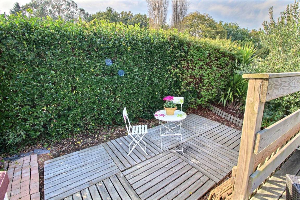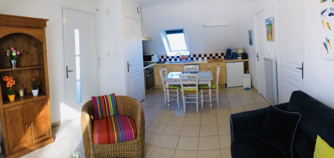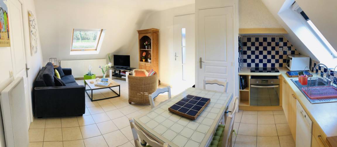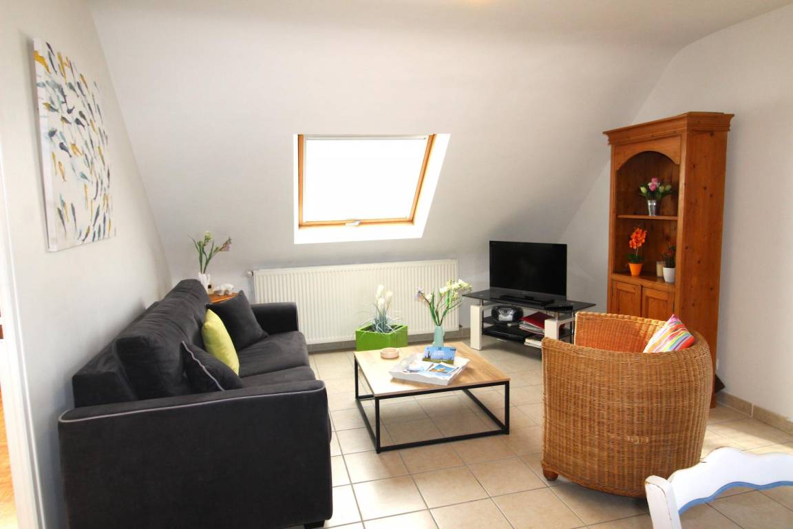 Ihre Ferienwohnung besteht im Hochparterre aus: Einbauküche, Essecke, Wohnzimmer. Ein Schlafzimmer mit einem Doppelbett (160X200), Badezimmer mit Dusche und WC. Hübsche Holzterrasse von 16 m² und kleiner Garten von 40 m² (über ein paar Stufen erreichbar).