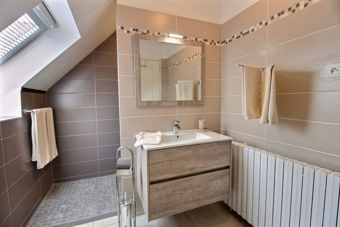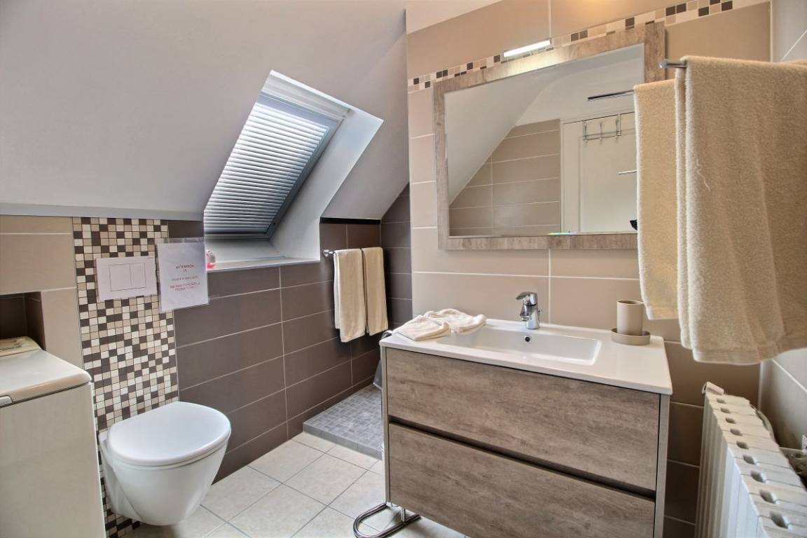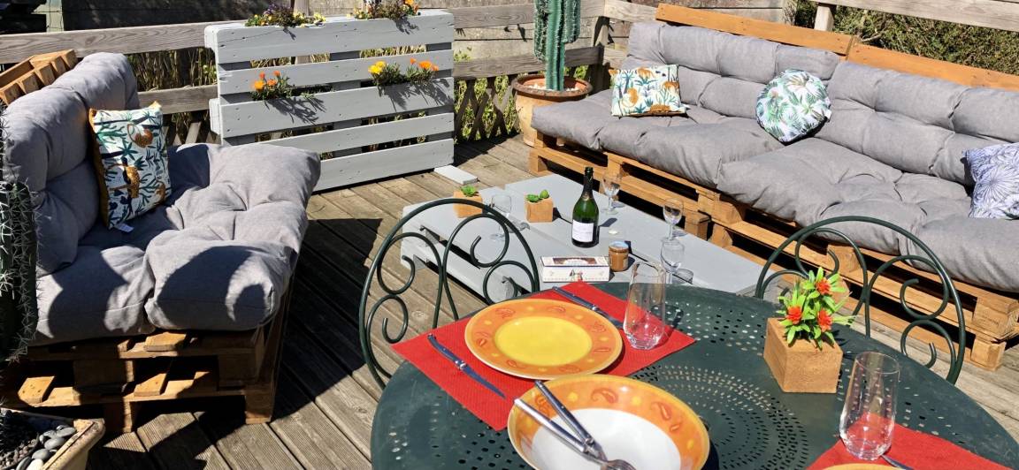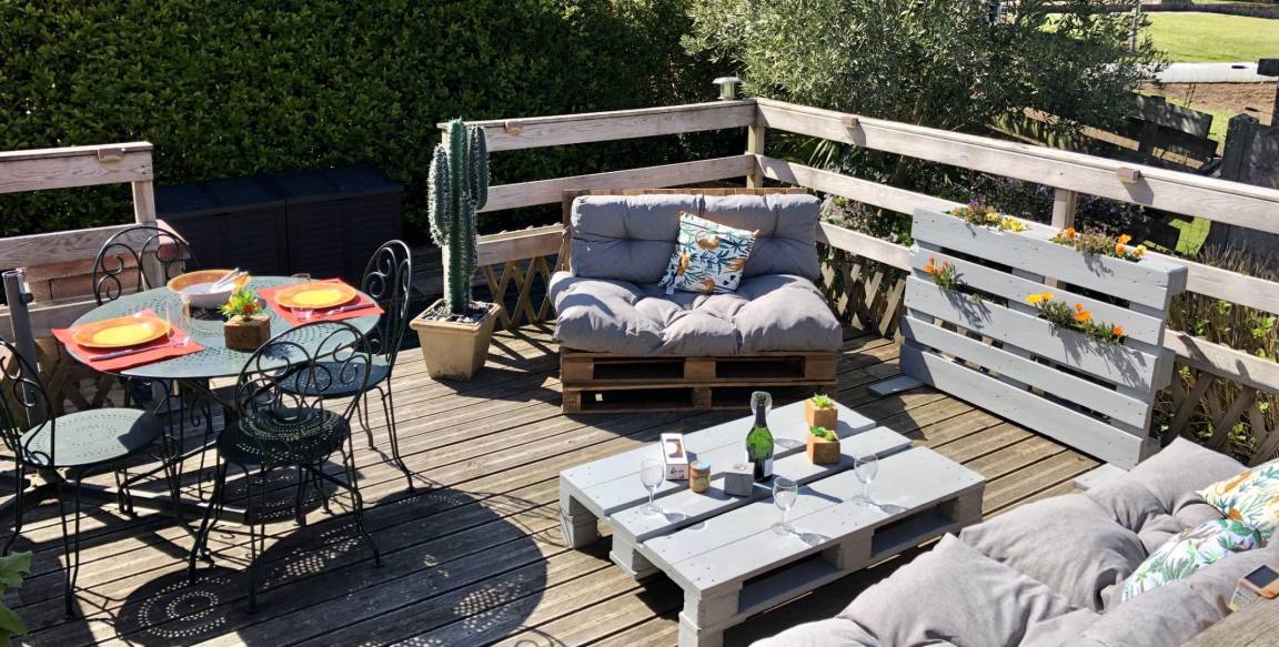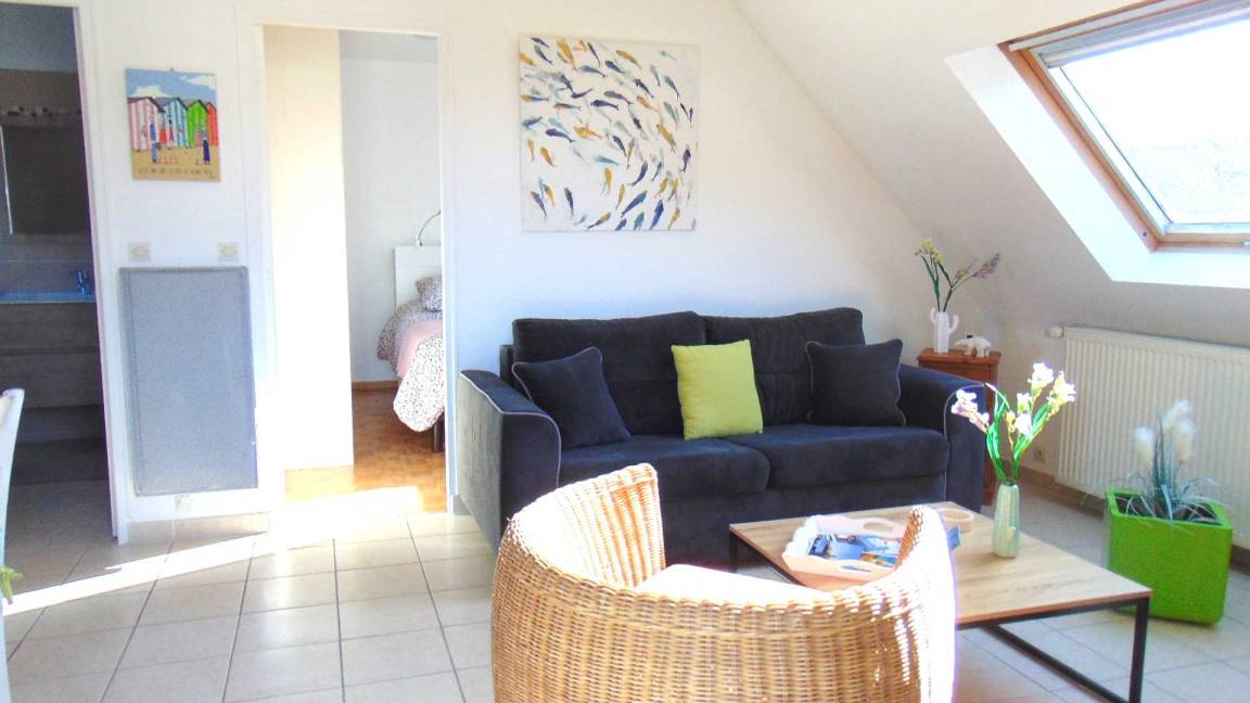 Ihre Ferienwohnung besteht im Hochparterre aus: Einbauküche, Essecke, Wohnzimmer. Ein Schlafzimmer mit einem Doppelbett (160X200), Badezimmer mit Dusche und WC. Hübsche Holzterrasse von 16 m² und kleiner Garten von 40 m² (über ein paar Stufen erreichbar).