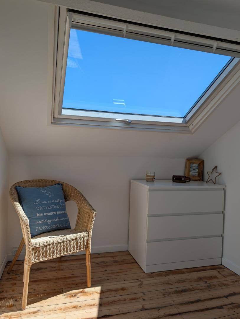 „Maison et jardin agréable, proche de la plage et des commerces. Chambres à l'étage.Bonne literie. Accès aux velux et pour redescendre attention requise pour les grandes personnes.“