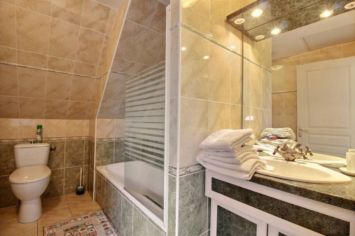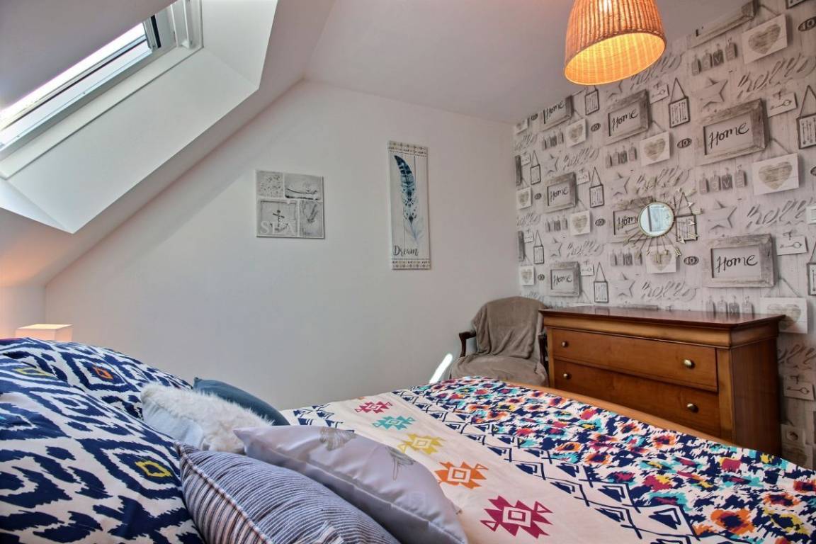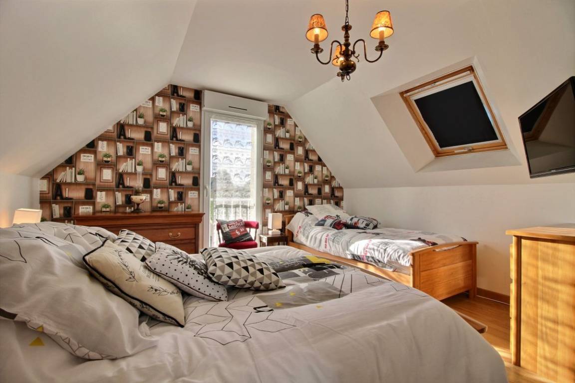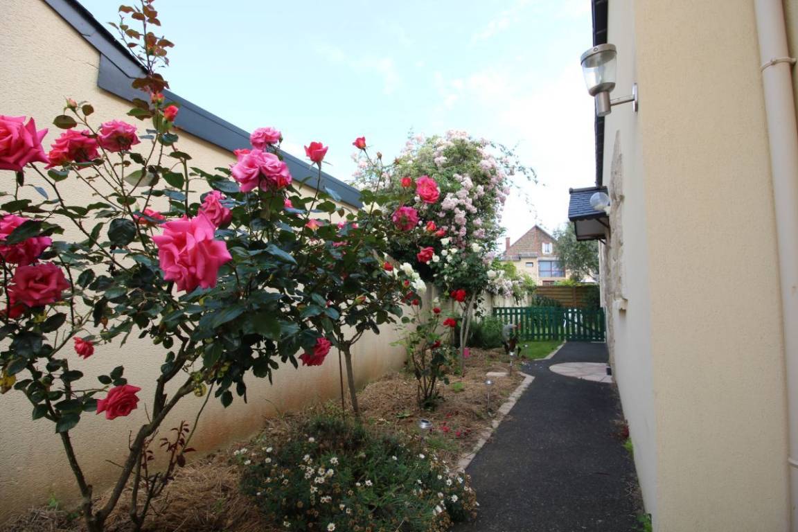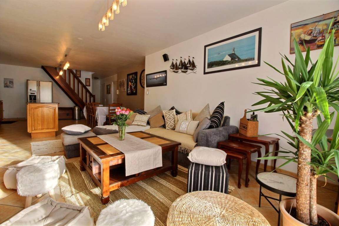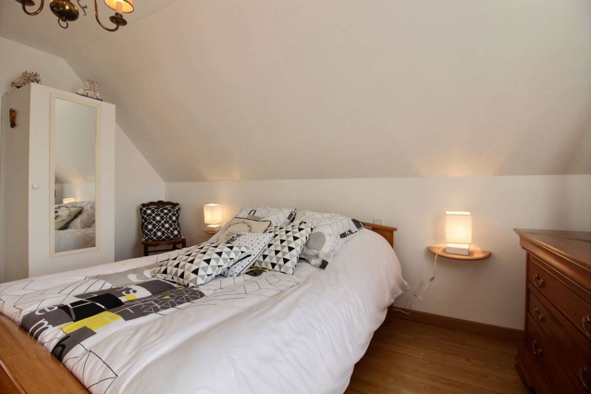 Dieses Urlaubshausangebot umfasst: Im Erdgeschoss: ein Ess-Wohnzimmer mit offener, komplett ausgestatteter Küche, ein Zimmer mit einem Bett 140 cm. Ein Badezimmer mit Toilette, eine separate Toilette und eine Waschküche. Im Obergeschoss: drei Zimmer (3 Betten 140 cm + 1 Bett 90 cm), ein Bad mit WC. Garten mit 100m² großer Rasenfläche und überdachter Terrasse. Eigene Garage vorhanden und Parkmöglichkeit im gepflasterten Innenhof. Wegerecht vor dem Haus für den Zugang eines anderen Mietshauses. A