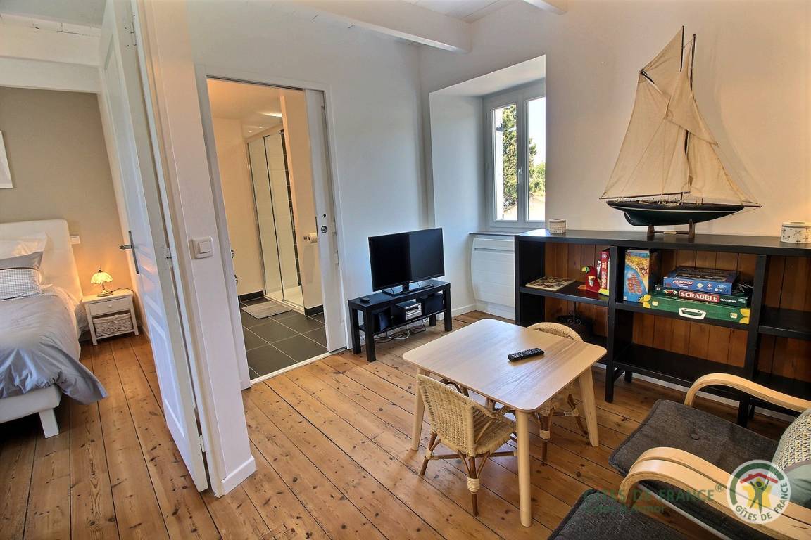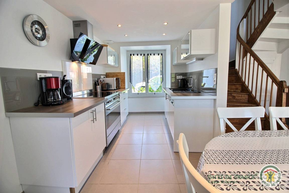 Ihre Ferienwohnung umfasst im Erdgeschoss ein Wohnzimmer mit schöner Einbauküche, separate Toiletten. Im 1. Stock: ein in eine Bibliothek umgewandelter Treppenabsatz mit TV, ein Schlafzimmer mit 2 Einzelbetten 80x200, ein Schlafzimmer mit 2 Betten 90x190, ein schönes Badezimmer mit ebenerdiger Dusche und WC. Im 2. Stock: 2 Schlafzimmer mit je 2 Einzelbetten 90x190), ein Duschbad mit WC. Genießen Sie die Außenbereiche mit einem Innenhof und einem 600 m² großen umzäunten Landschaftsgarten. Für Ihren Parkplatz ist ein privater Parkplatz von 140m² für Sie reserviert. Sie haben möglichen Zugang zu einer angrenzenden Garage mit den Außenmaßen: 4m x 2,60m. 4 Fahrräder für Erwachsene vorhanden (ohne Helm).