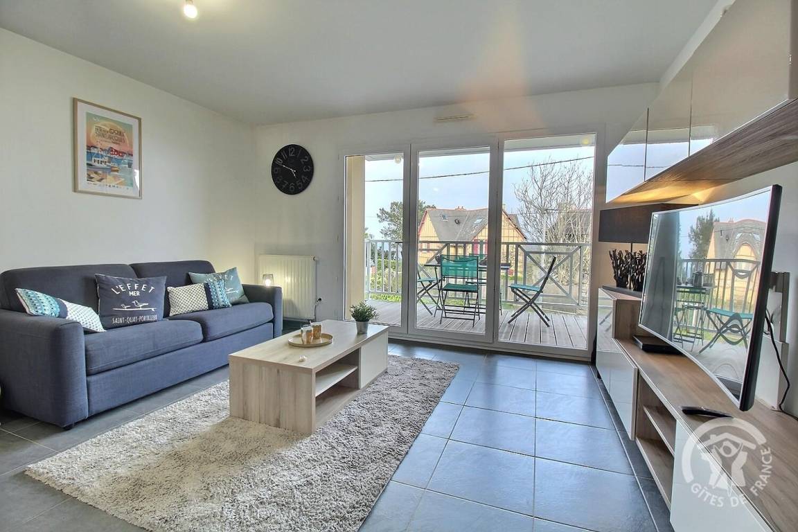 Sehr komfortabel und geräumig für 2 Personen, Sie verfügen über eine gut geschützte Balkonterrasse mit Blick aufs Meer ... Die Aussicht ist herrlich und so entspannend! Sie müssen lediglich die Residenz verlassen, um den 100 m entfernten Zollweg zu erreichen, der Ihnen ein wunderschönes Panorama auf die Bucht von Saint Quay bietet. Der nach Süden ausgerichtete Strand Grève Noire liegt ganz in der Nähe, während der Casino-Strand, ein wunderschöner Familienstrand am Rande des Stadtzentrums, 800 m entfernt ist. 2,5 km vom Fischerei- und Yachthafen von St-Quay und 4,5 km von Binic entfernt. In seinem Yachthafen ist das ganze Jahr über viel los, und je nach Saison können Sie einen kurzen Stopp einlegen, um Crêpes und ein Eis zu genießen. 23 km von Saint-Brieuc, 28 km von Paimpol und 34 km vom Pier zur Ile de Bréhat.