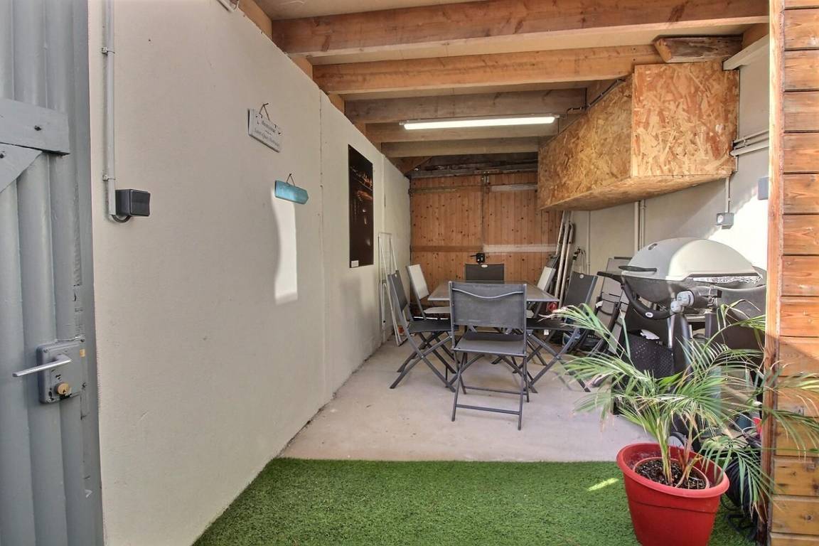 Draußen hat das Mietobjekt seinen Eingang über einen geschlossenen Innenhof von 19 m², privat und teilweise überdacht mit Gartenmöbeln und Grill.
