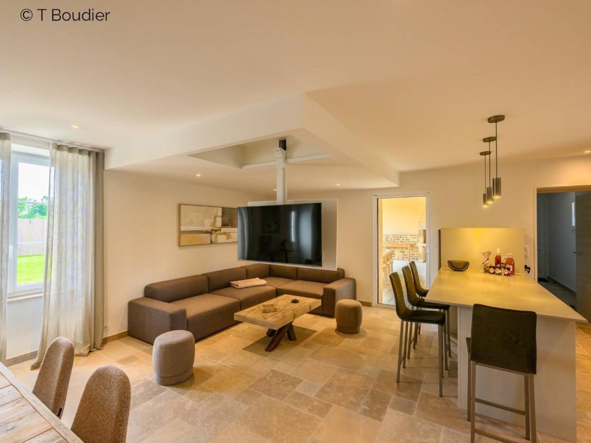 Zwischen wilden Stränden und sanfter Hügellandschaft gelegen, bietet dieses charaktervolle Haus für 8 Personen bemerkenswerten Komfort für Ihren Aufenthalt. Hinter den mohnroten Fensterläden verbirgt sich ein modernes und raffiniertes Interieur. Die Qualität der Materialien ist bemerkenswert und die Freizeiteinrichtungen vor Ort sind zahlreich. Sie können einen herrlichen privaten Innenpool genießen und im Nebengebäude haben die Eigentümer einen Wellnessbereich mit Fitnessraum sowie ein Spielzimmer eingerichtet! Der gut eingezäunte Außenbereich ist zudem mit einem Carport mit Elektroladestation ausgestattet. Agnès kümmert sich gerne um Sie und bietet Ihnen verschiedene optionale Dienstleistungen wie einen Privatkoch oder eine qualifizierte Kosmetikerin an.