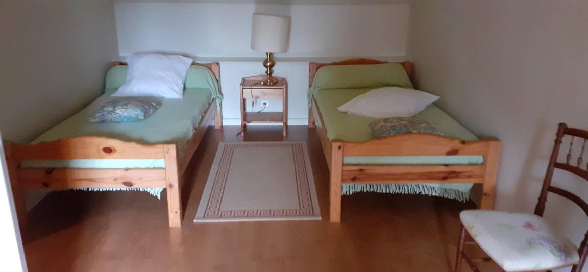 Obergeschoss: Ein Schlafzimmer mit zwei Einzelbetten (90 x 190 cm), ein Schlafzimmer mit Doppelbett (160 x 200 cm). Duschbad. WC. Ankleidezimmer.