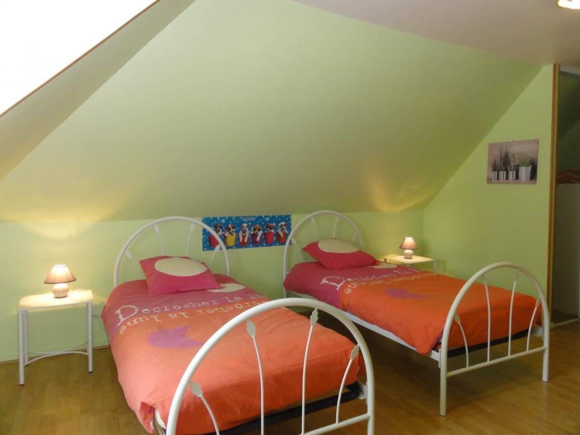 „Gîte qui est très bien pour une famille sans soucis de santé car il n'y a aucune chambre au RDC. Un rideau de douche ne serait pas du superflus. Belle table de ping pong pour passer le temps lors des séances de pluie. Cadre très agréable.“