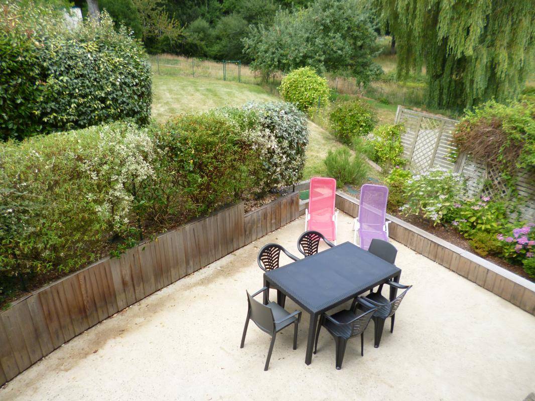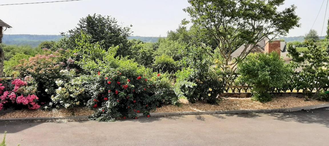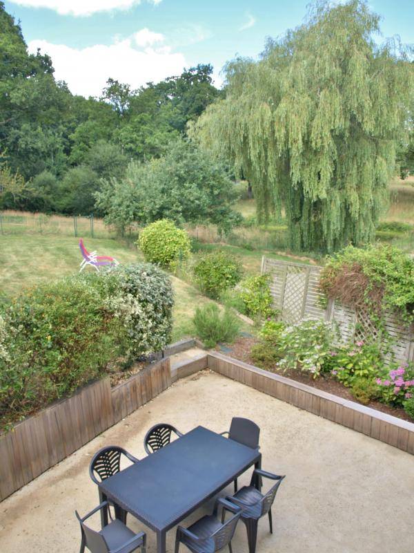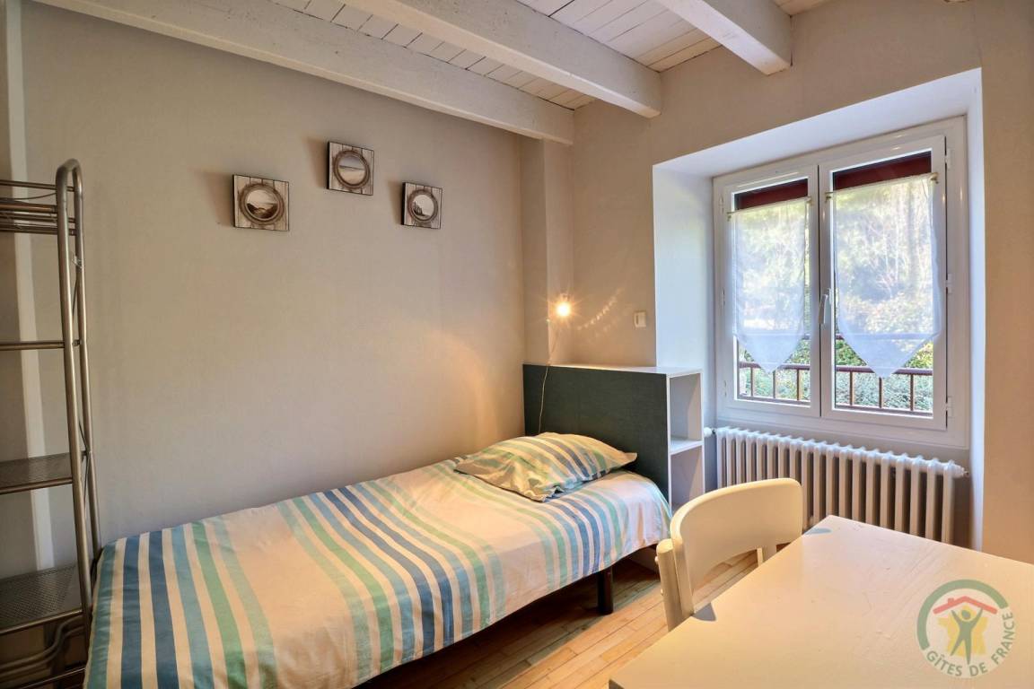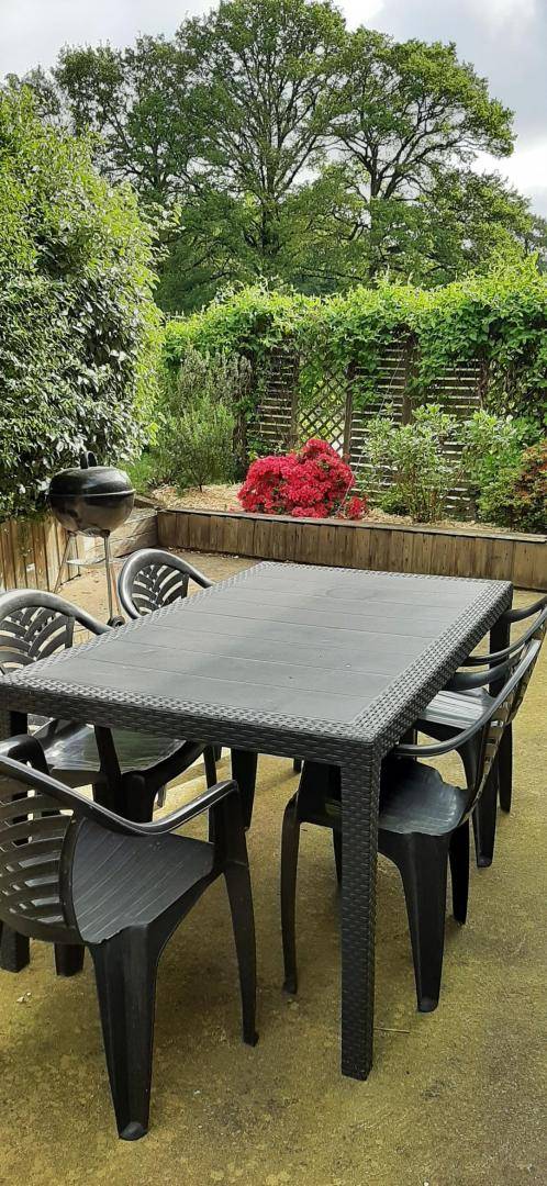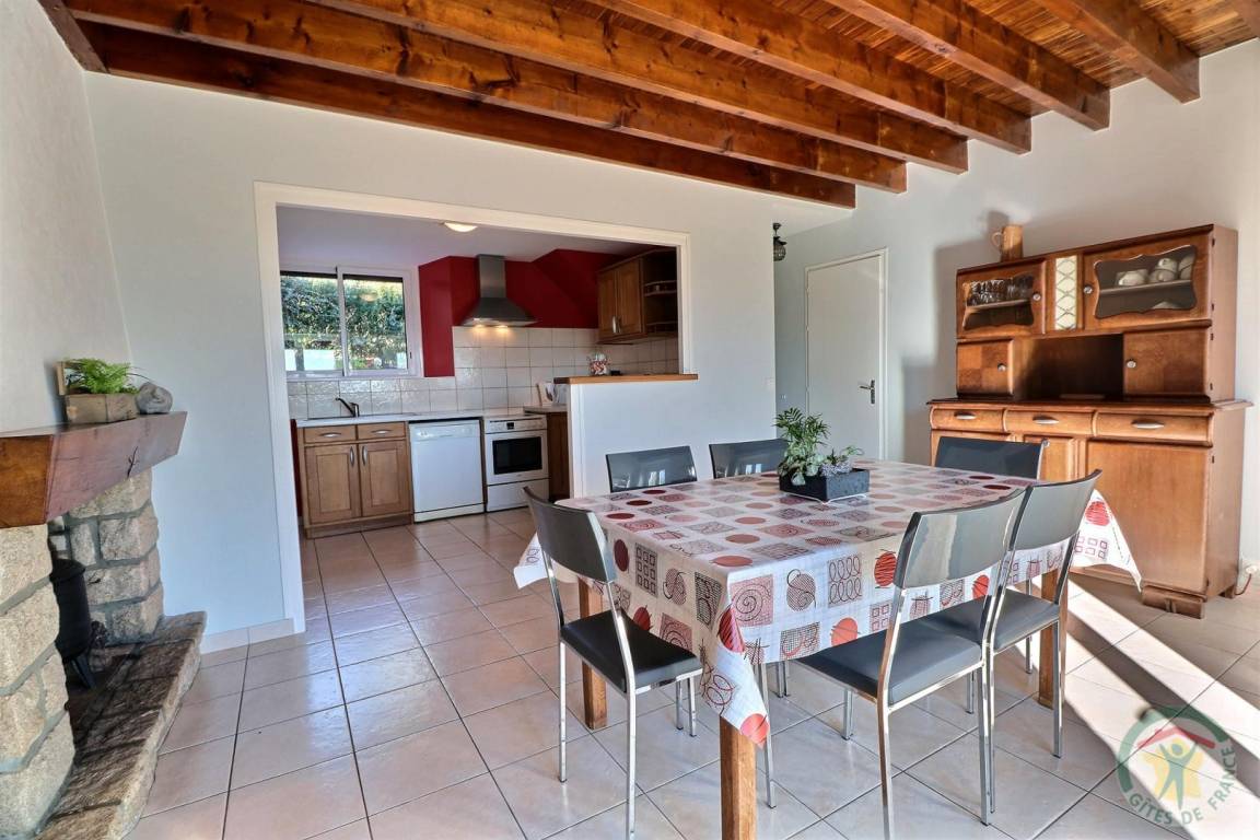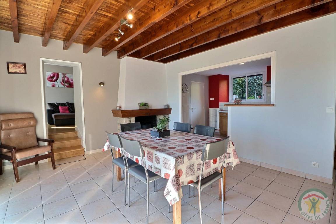 EG: Esszimmer, Kamin, Einbauküche - Wohnzimmer - 1 Zi (1 Doppelbett) - WC - Badezimmer. Stockwerk: 1 Zi (2 Einzelbetten), 1 Zi (2 große Einzelbetten), Bad mit Dusche, WC. Zentralheizung mit Heizöl (Tagespauschale). Waschküche anliegend. Geschlossener Hof vor dem Haus. Eigene schattige Terrasse hinter dem Haus mit Gartenmöbeln, Grill, geschlossene Rasenfläche mit Blick auf den Wald. Betten bei der Ankunft gemacht.
