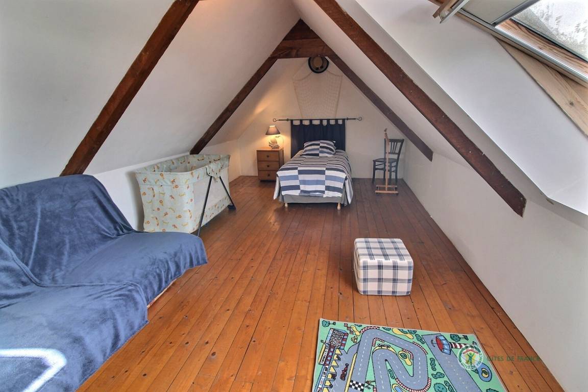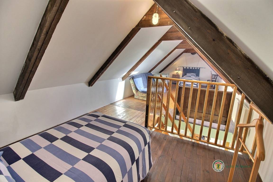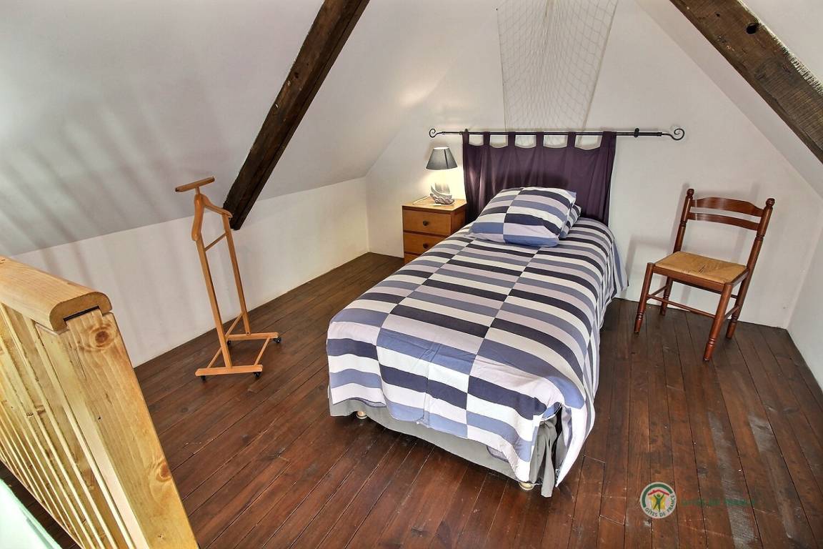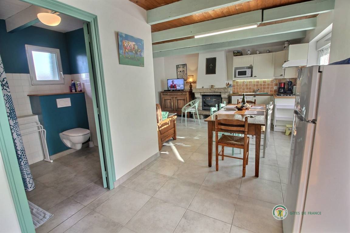 Renovierter Gite auf dem Bauernhof des Besitzers mit Hof und Grünfläche von 800 qm. Erdgeschoss: Wohnzimmer mit eingebauter Küche und Essecke, Kamin, 1 Schlaf-Zi. (1 Doppelbett, 1 Babybett), von dem aus der erste Stock über eine Leiter zu erreichen ist, Bad mit WC. 1. Etage: 1 sehr grosses Schlaf-Zi. (2 Einzelbetten 1,20 m). Dieser Gite liegt 3.5 km