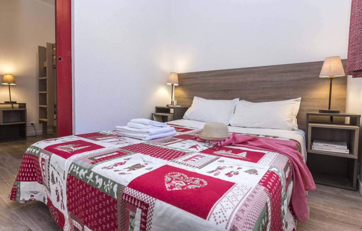 Fläche von ungefähr 35 m². Einige als Maisonette. Wohnzimmer mit Ausziehschlafcouch für 2 Personen. Schlafzimmer mit Doppelbett. offener Schlafbereich mit 2 Stockbetten oder 2 Einzelbetten. Kochnische mit Kaffeemaschine, Geschirrspülmaschine, Mikrowellenherd, Kochplatte, Kühlschrank. Badezimmer mit Badewanne oder Dusche. WC. Balkon ODER Terrasse. Die oberen Betten sind nicht für Kinder unter 6 Jahren geeignet.
