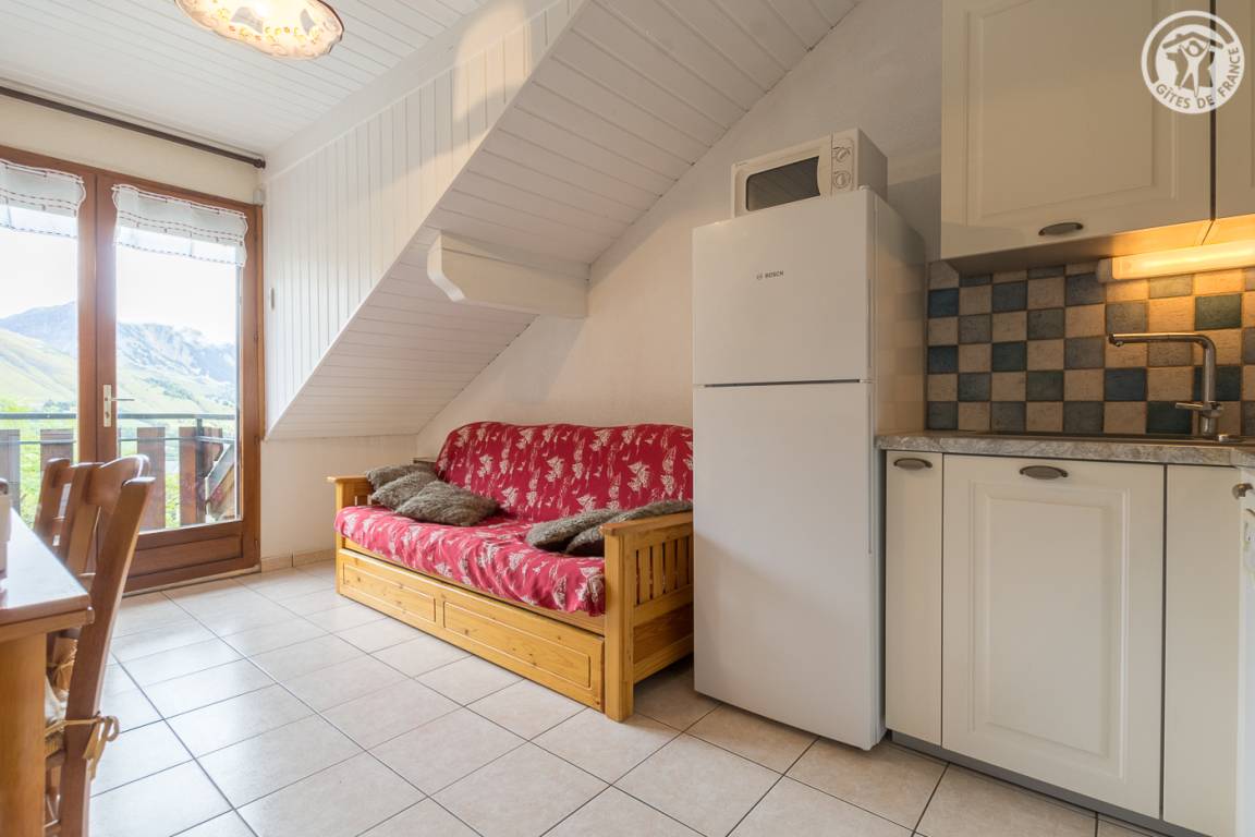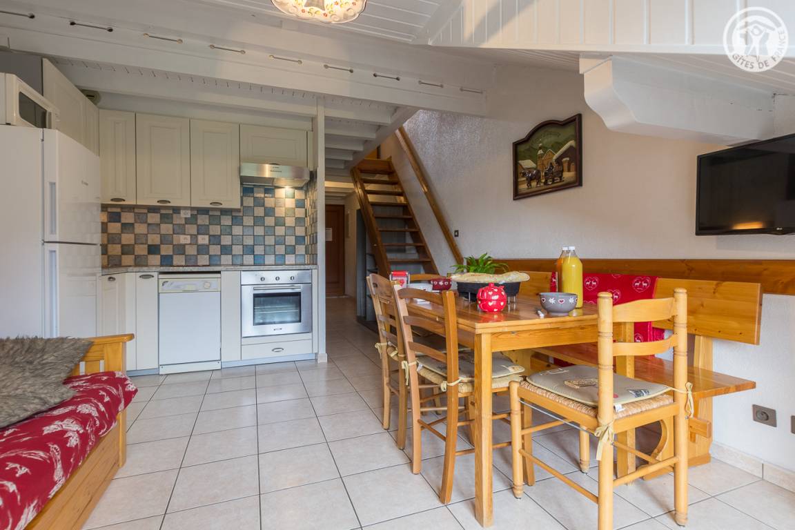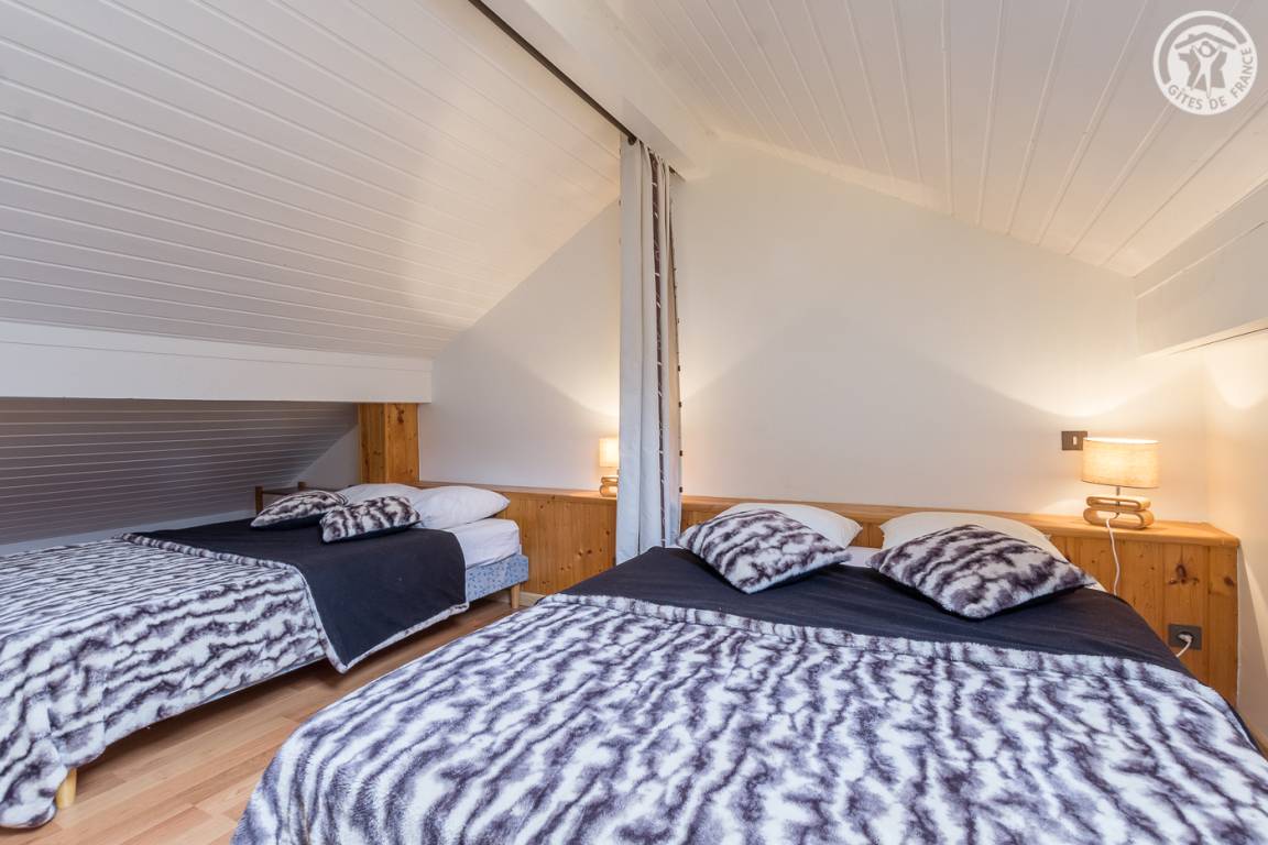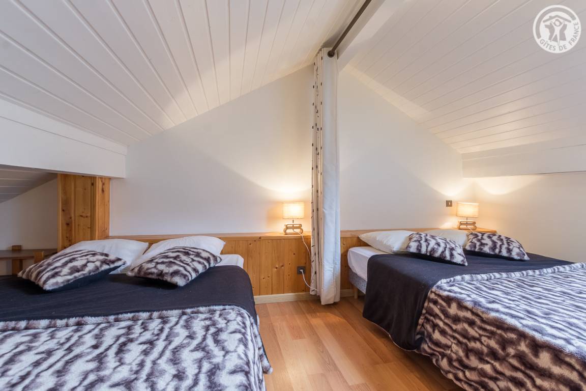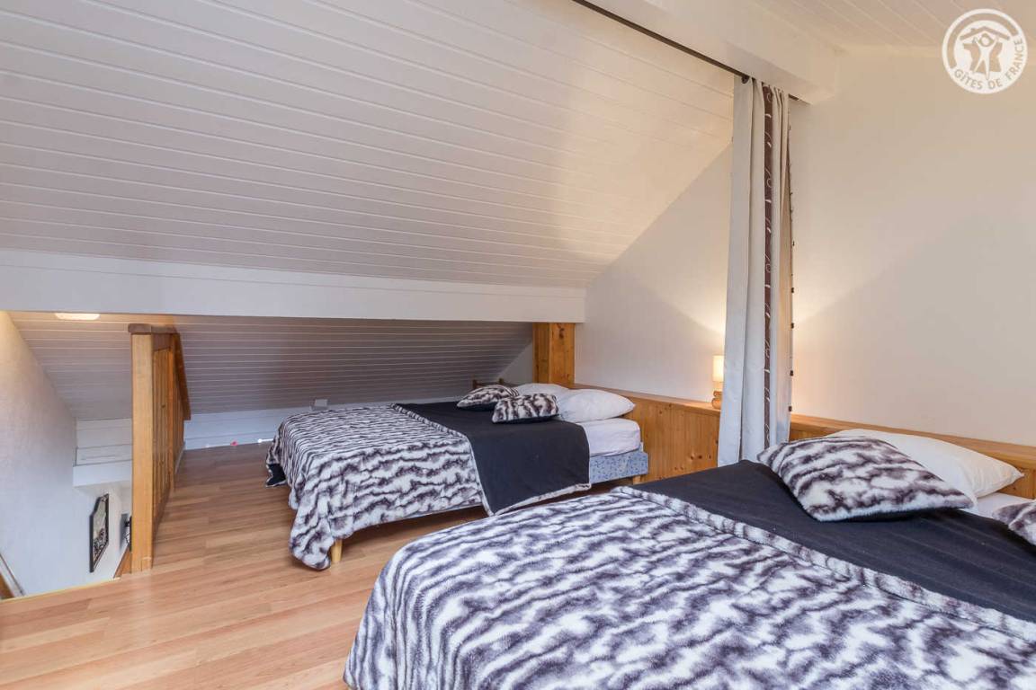 4 Ferienhäuser und 2 Geschäfte (Friseur und Pizzeria) in einem Reihenhaus (mit unabhängigem Zugang). 1. und 2. Etage: Wohnküche, Wohnbereich, 1 Schlafzimmer (1 Doppelbett 140 x 190 cm), Zwischengeschoss (2 Doppelbetten 140 x 190 cm), Badezimmer (Badewanne), separates WC. Gemeinsame Waschmaschine und Trockner. Balkon. Kleine Gemeinsamkeit. Gesamtnutzfläche: 52m² inkl. Dachgeschossflächen. 20 % Ermäßigung auf den Verleih von Skiausrüstung durch Eigentümer.