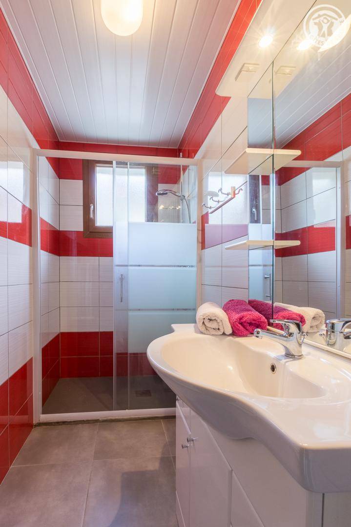 4 Ferienhäuser und 1 Sportgeschäft in einem Reihenhaus (mit unabhängigem Zugang). 1. Stock: Wohnküche, 2 Schlafzimmer (1 Doppelbett 140 x 190 cm/ 2 Einzelbetten 90 x 190 cm, Etagenbett, 1 Doppelbett 140 x 190 cm), Badezimmer (Badewanne) und separates WC. Gemeinsame Waschmaschine und Trockner. Balkon. Kleiner Gemeinschaftsraum. 20 % Ermäßigung auf den Verleih von Skiausrüstung durch die Eigentümer.