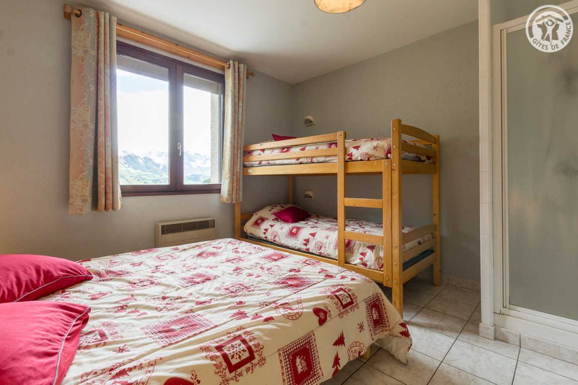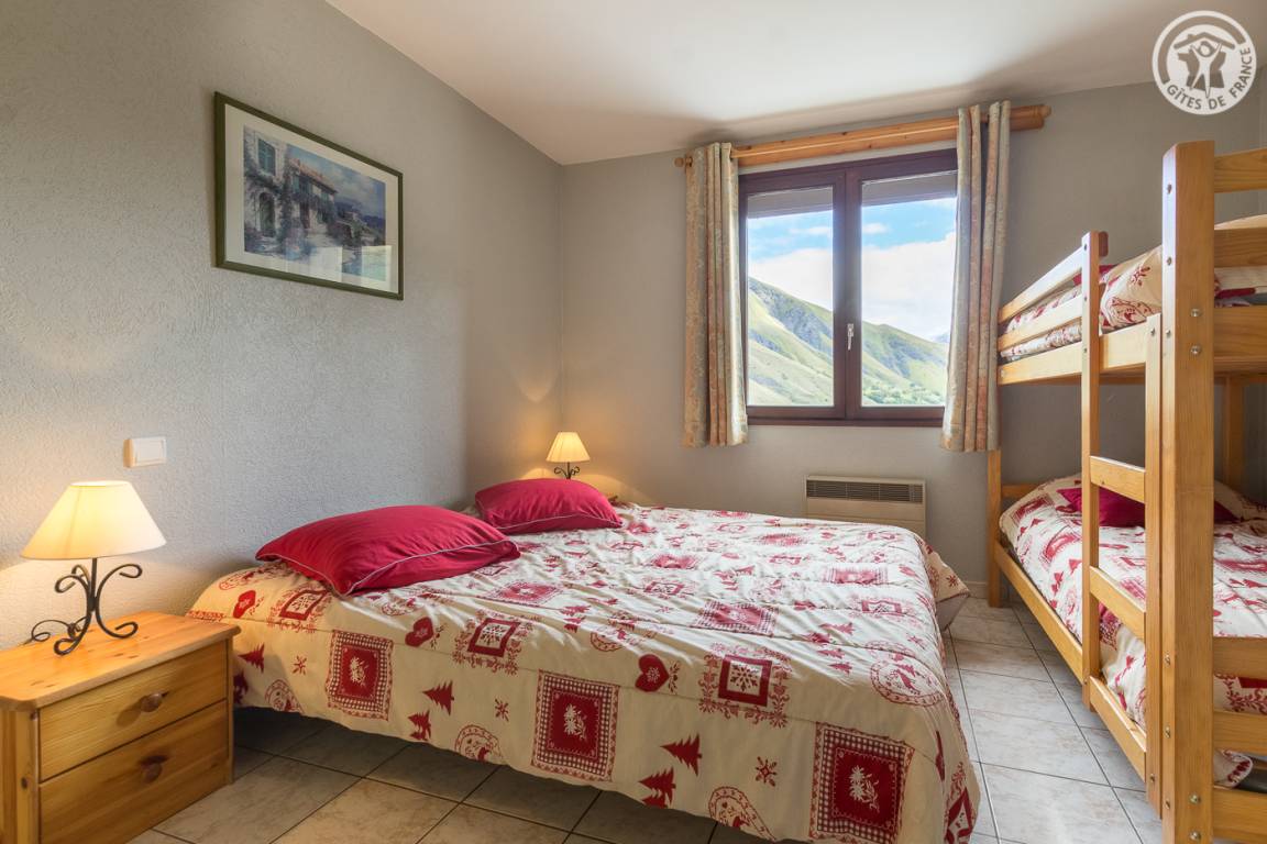 4 Ferienhäuser und ein Sportgeschäft in einem Reihenhaus (mit unabhängigem Zugang). 2. und letzte Etage: Wohnküche, Loungebereich, 2 Schlafzimmer, 1 davon mit Duschkabine (1 Doppelbett 160 x 200 cm, 2 Einzelbetten 90 x 190 cm, Etagenbett / 1 Doppelbett 140 x 190 cm), Badezimmer mit Wasser (Dusche) und separates WC. 3 angrenzende Schlafzimmer mit unabhängigem Zugang zum Flur (1 Doppelbett 140 x 190 cm und 2 Einzelbetten 90 x 190 cm, Etagenbetten / 1 Doppelbett 140 x 190 cm mit Bad (Dusche) und eigenem WC / 1 Doppelbett 140 x 1990 cm). Gemeinsame Waschmaschine und Trockner. 2 Balkone. Kleine Gemeinsamkeit. 20 % Ermäßigung auf den Verleih von Skiausrüstung durch Eigentümer.