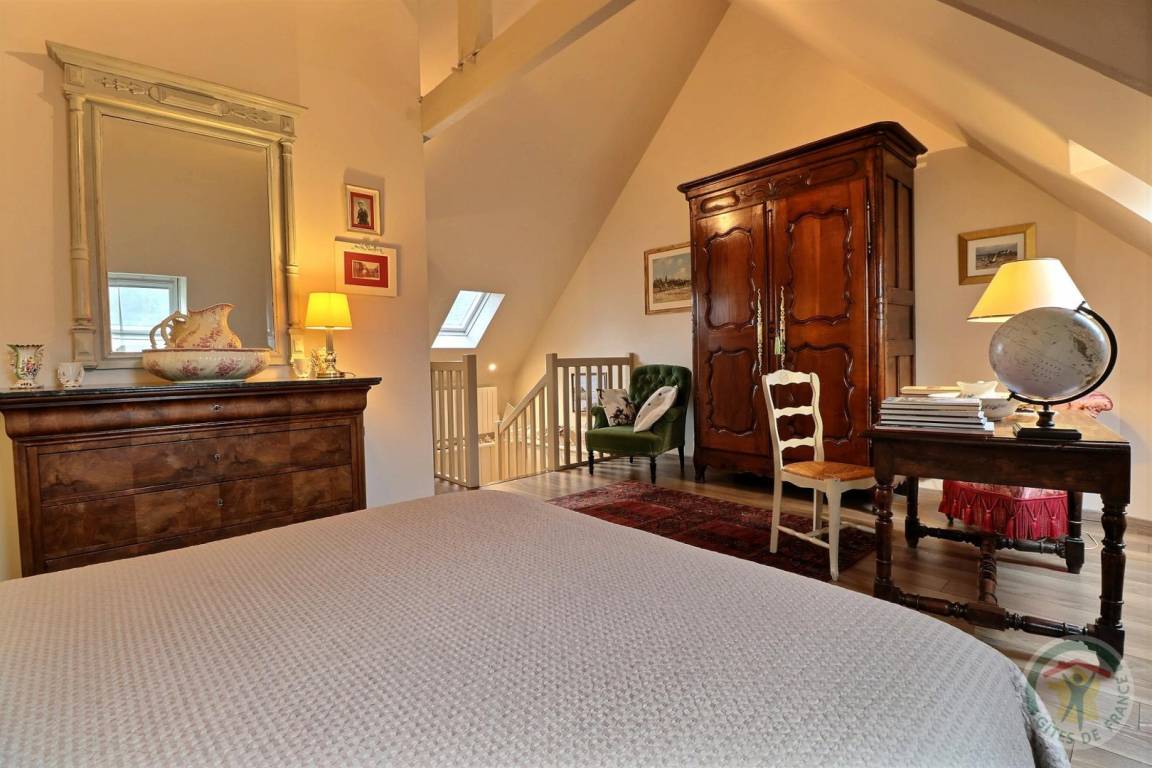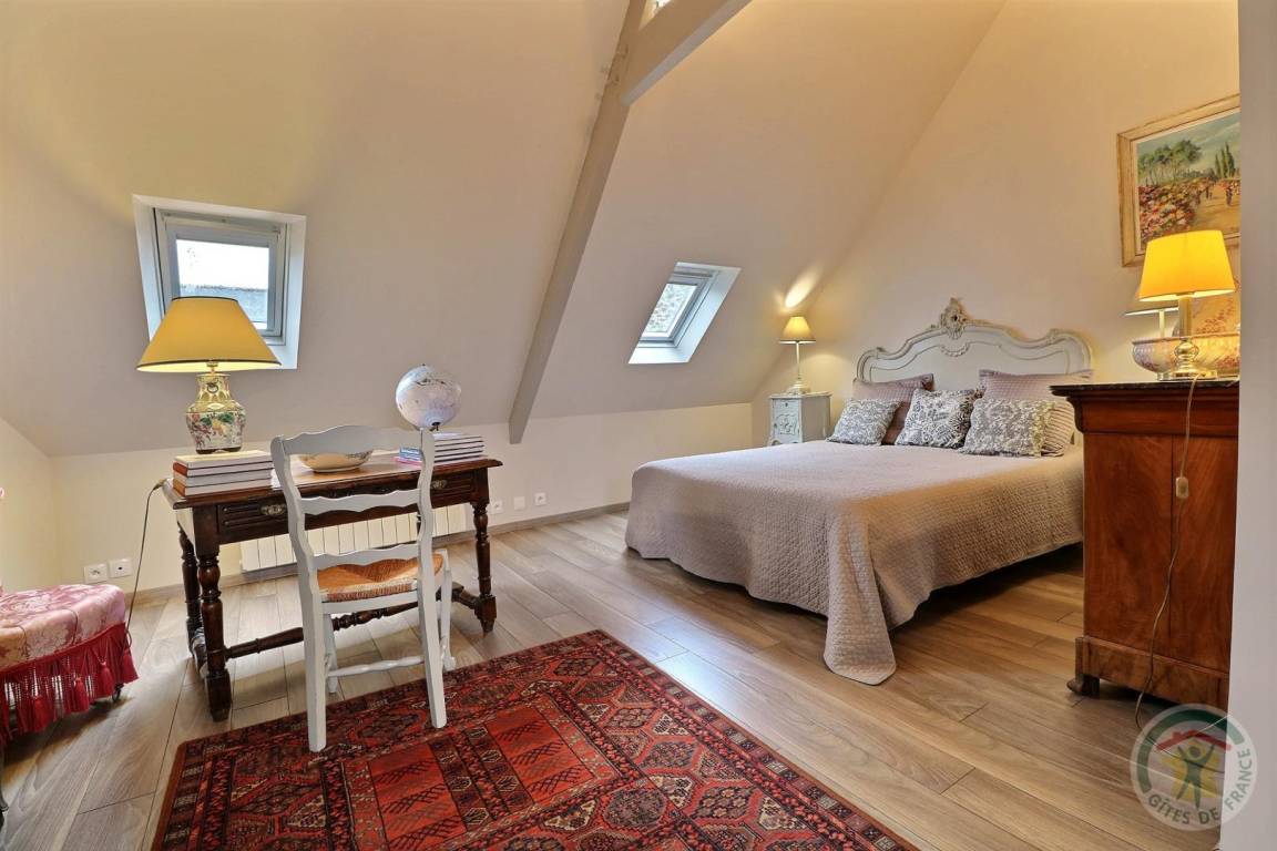 - ein Schlafzimmer mit Zugang zum Treppenabsatz, einem 160 x 200 cm großen Bett und einem eigenen Badezimmer mit Dusche und WC.
