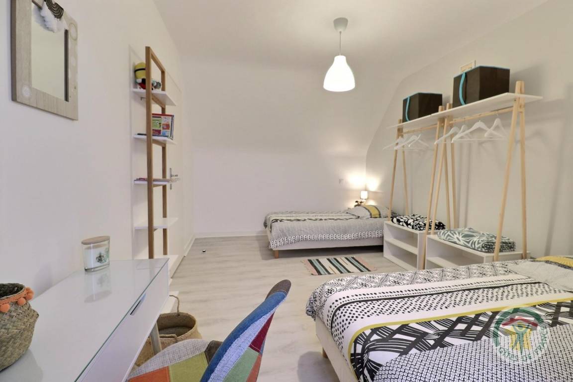 Im Obergeschoss: ein Schlafzimmer mit zwei 90X190-Betten (Kinderbetten), ein Schlafzimmer mit einem 160X200-Bett und Fernseher, ein Schlafzimmer mit einem 140X190-Bett, ein Badezimmer mit Doppelwaschbecken und Badewanne, eine separate Toilette. Kostenlose Parkplätze in unmittelbarer Nähe und Möglichkeit der Garagenzufahrt für ein kleines Fahrzeug. Für Ihren Komfort: Die Betten sind bei Ihrer Ankunft bezogen und die Bettwäsche ist im Preis inbegriffen. Zuzüglich Grundreinigungspauschale von 95 €. Option zur Reinigung des Grills am Ende des Aufenthalts (15 €). NICHTRAUCHER-FERIENHAUS. Unsere tierischen Freunde werden nicht akzeptiert.