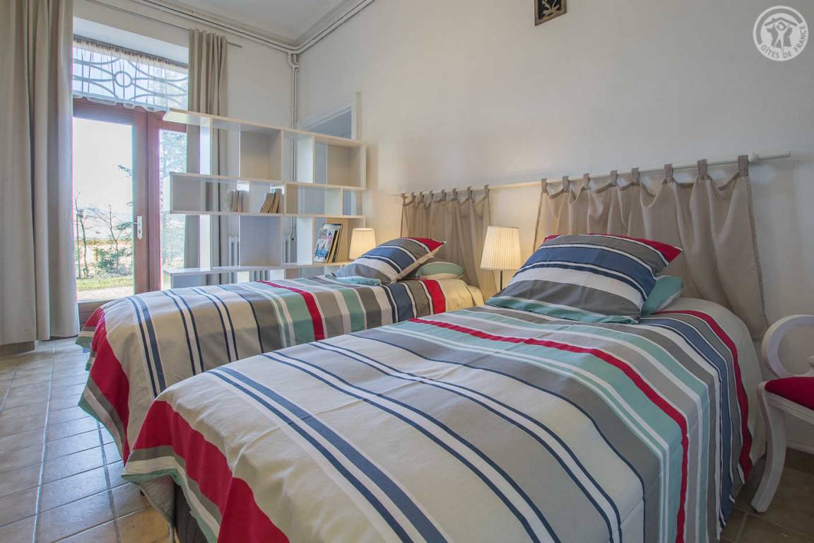Gîte im Erdgeschoss des Hauses der Eigentümer. Unabhängiger Zugriff. Küche. 1 Schlafzimmer (2 Einzelbetten 90x200cm). Großes 37 m² großes Wohnzimmer mit integriertem Schlafbereich (1 Doppelbett 140 x 200 cm). Bettdecke + Bettwäsche inklusive und Betten bei der Ankunft bezogen. Badezimmer (Dusche) und separates WC auf dem Treppenabsatz. Private Terrasse mit Gartenmöbeln. Herrlicher Park mit Bäumen und Blumen. Parkplatz auf dem Grundstück.