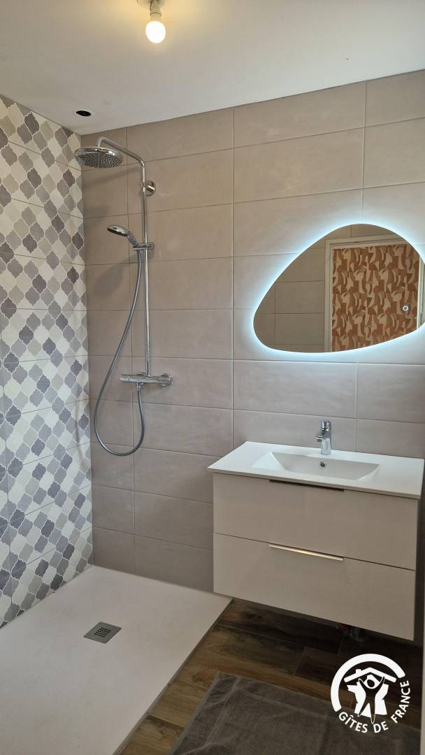 „Nous avons passé un super week-end dans ce gîte. Tout est très bien pensé. La maison est bien équipée également. Merci à Laetitia pour son accueil, je recommande à 100%. L’endroit est paisible et relaxant car pas de voisinage proche, au top !“