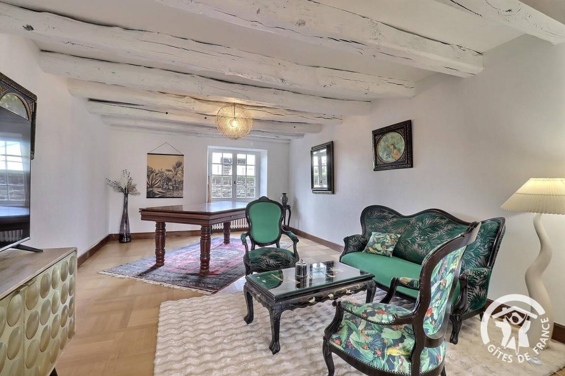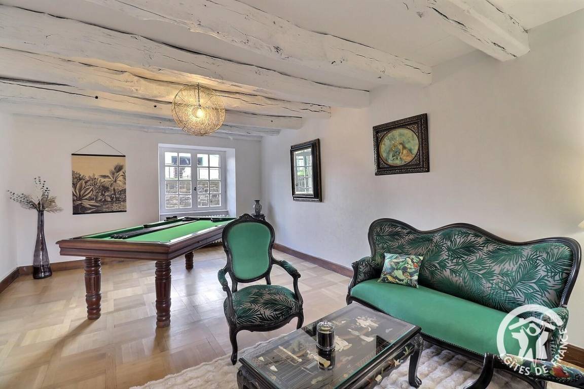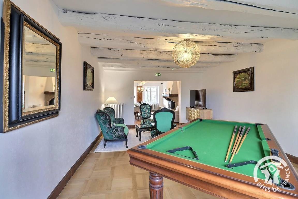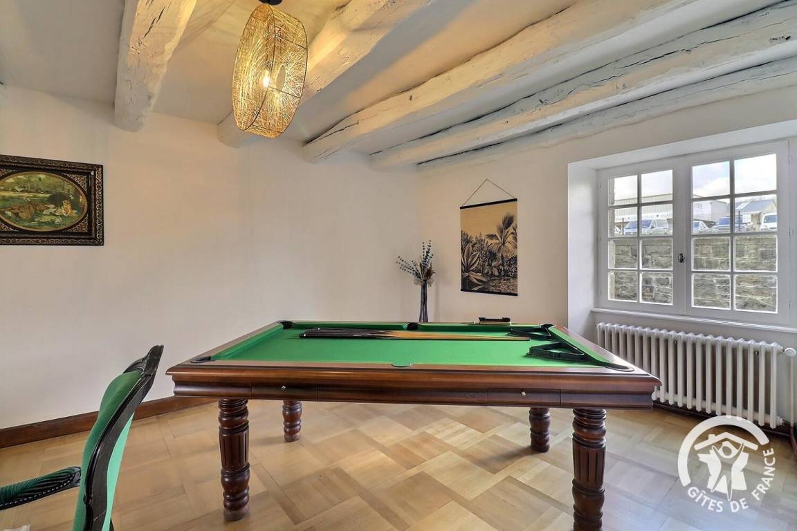 - ein großes Wohnzimmer mit Esszimmer und Holzofen (erstes Feuer frei), eine Lounge mit Billardtisch