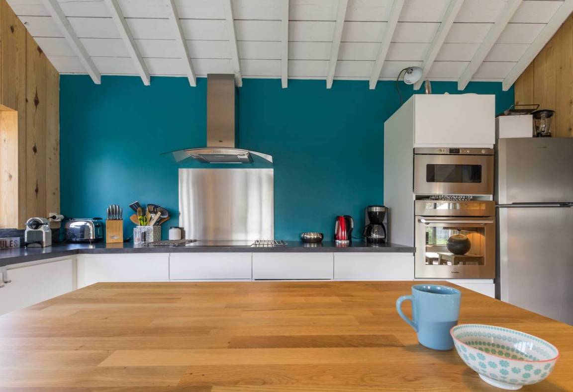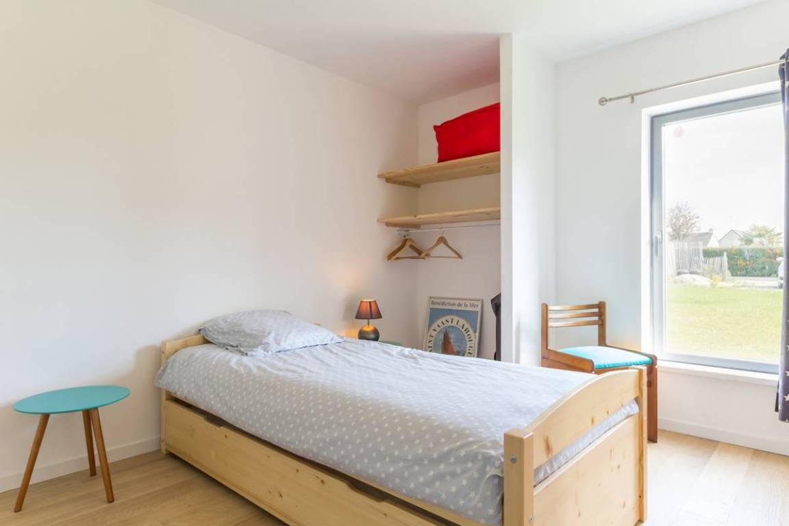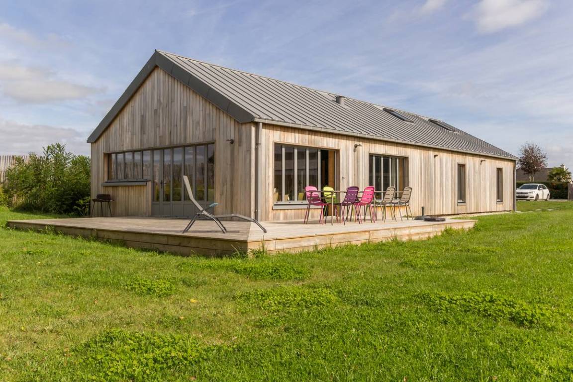 Freistehendes, ebenerdiges Haus. Wohnzimmer (TV, WLAN, Stereoanlage) mit offener, voll ausgestatteter Küche (Backofen, Induktionskochfeld, Geschirrspüler, Kühl-/Gefrierschrank, Mikrowelle, Espressomaschine). Hauswirtschaftsraum (Waschmaschine, Wäschetrockner). Schlafzimmer 1 (Queensize-Bett) mit eigenem Duschbad. Schlafzimmer 2 (Queensize-Bett). Schlafzimmer 3 (Doppelbett). Schlafzimmer 4 (zwei Ausziehbetten). Gemeinsames Duschbad für die Schlafzimmer 3 und 4. Badezimmer. 2 WCs. Babyausstattung. Bettwäsche und Handtücher werden bei Aufenthalten von mindestens einer Woche gestellt; ansonsten können sie gemietet werden. Heizung (Wärmepumpe) inklusive. Alle Nebenkosten inklusive. Reinigungsservice gegen Aufpreis. Privater Garten. Holzterrasse. Gartenmöbel. Grill. Sonnenliegen. Waschküche. Privater Parkplatz.