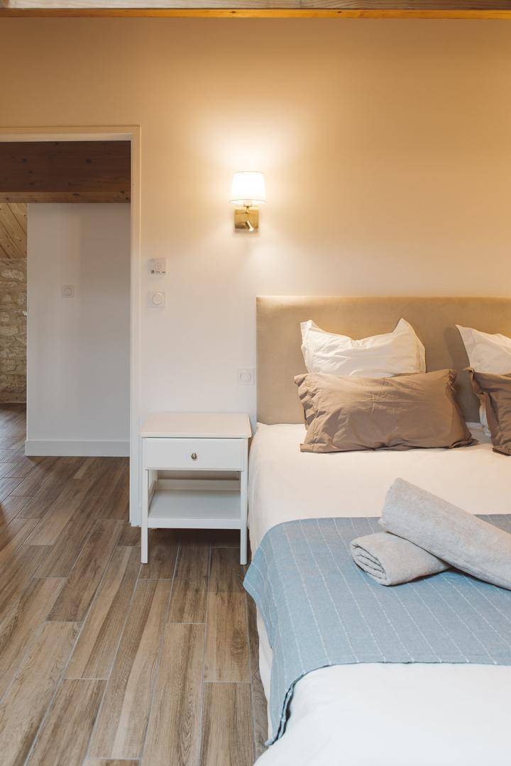 „Un gîte au top, confortable, parfaitement équipé, agréable à vivre (). Nous y avons séjourné 2 semaines en pleine canicule, la climatisation a parfaitement joué son rôle. Nous avons particulièrement apprécié l'accueil d'Albin (le proprio), son panier garni de spécialités de sa production nous a ravi. Nous recommandons ce gîte qui sort du lot, il faut bien le reconnaitre. Les biches nous ont accueillis matins et soirs ainsi que quelques lièvres en autres ! La région est très belle et pleine de lieux splendides à visiter. un seul bémol (remontée au propriétaire) concernant le manque d'occultant sur la face EST (entrée et séjour) qui permettrait d'être isolé du soleil matinal, notamment lors de période caniculaire comme c'était le cas lors de notre séjour.“