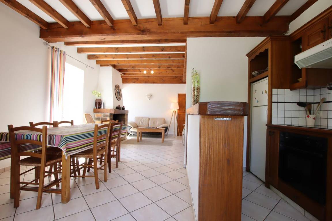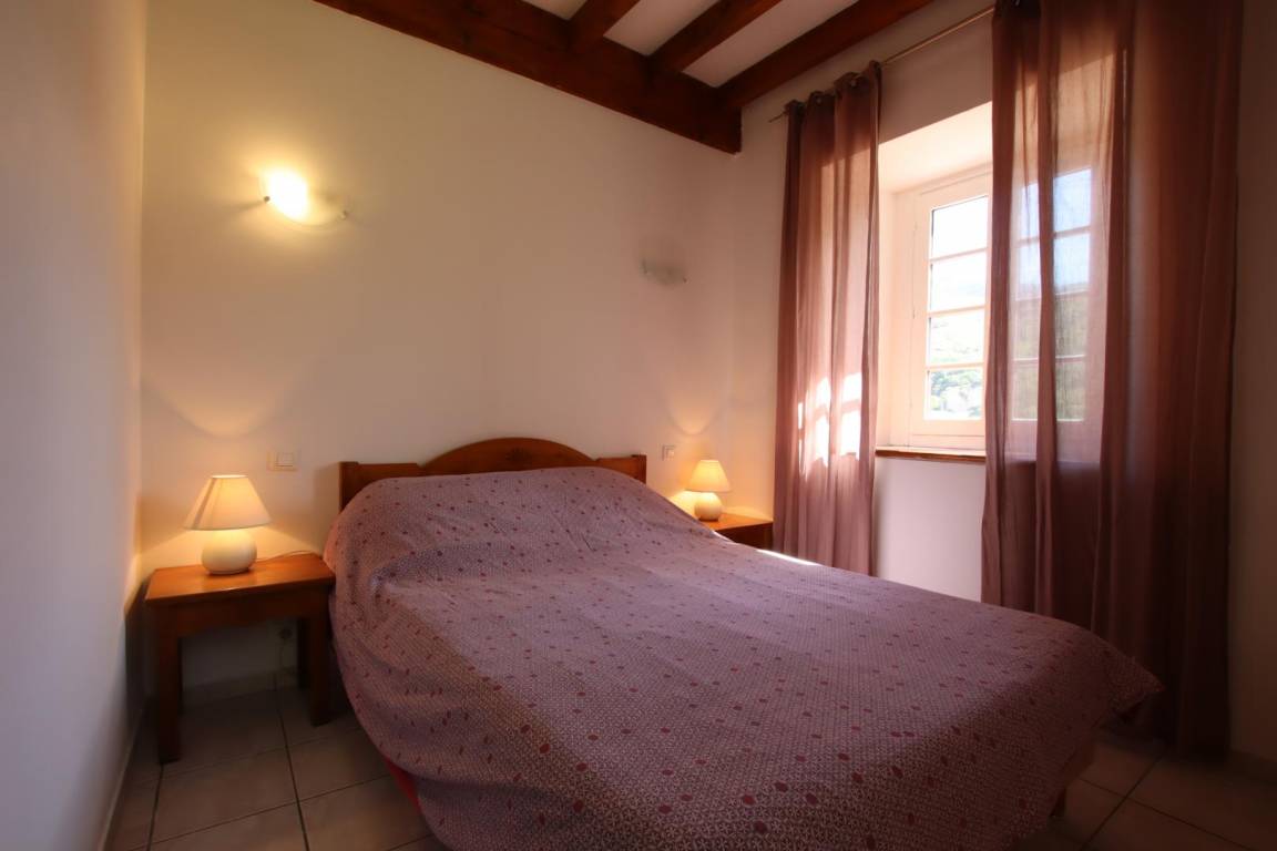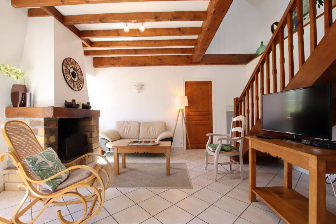 Wohnzimmer, Sitzecke (Kamin, TV). 1 Schlafzimmer (1 Doppelbett). TOILETTE.