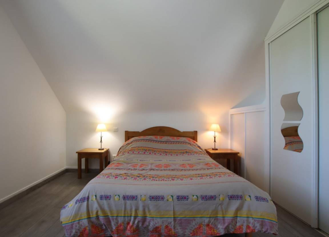 Bühne. 2 Schlafzimmer (1 Doppelbett, 2 Einzelbetten), Badezimmer. Toilette. Babyausstattung (Bett, Stuhl).