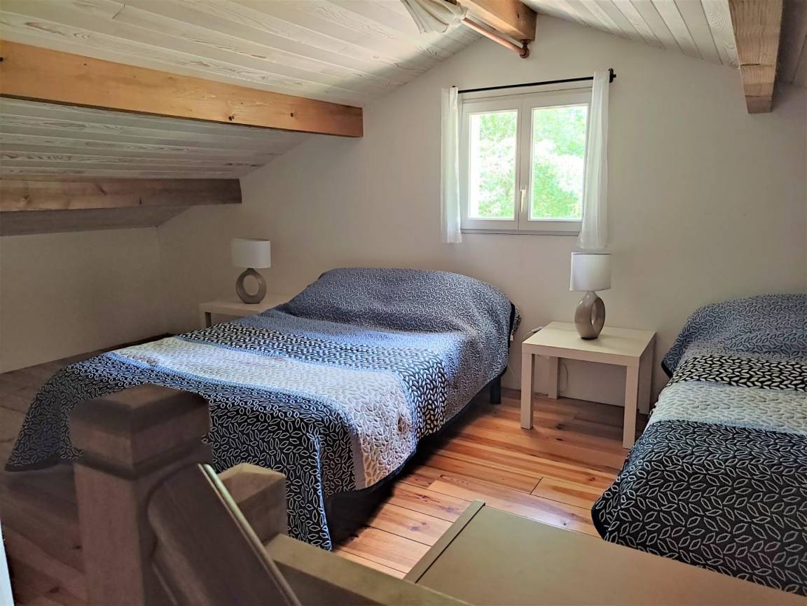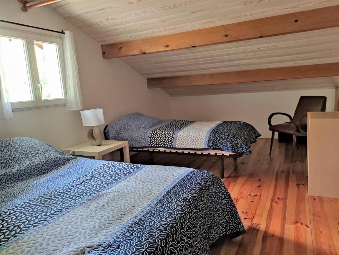 Das Schlafzimmer im Dachgeschoss im Zwischengeschoss bietet 3 Betten (1 140-cm-Bett, 1 90-cm-Bett).
