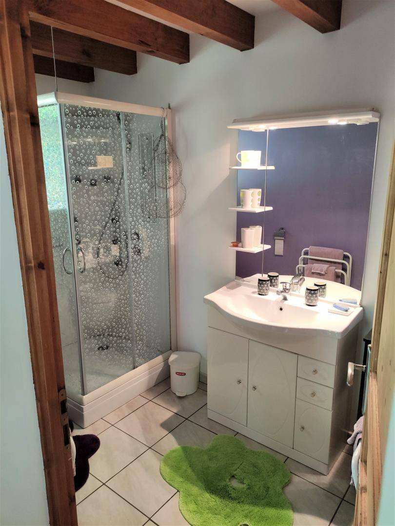„Le gîte est bien au calme dans la forêt, les propriétaires accueillants et discrets. Tout ce qu’on aime ! Le seul bémol c’est la TV qui est en fin de vie (je pense, avec des traits de haut en bas quasiment sur toute la largeur. Photos et vidéo à l’appui)“