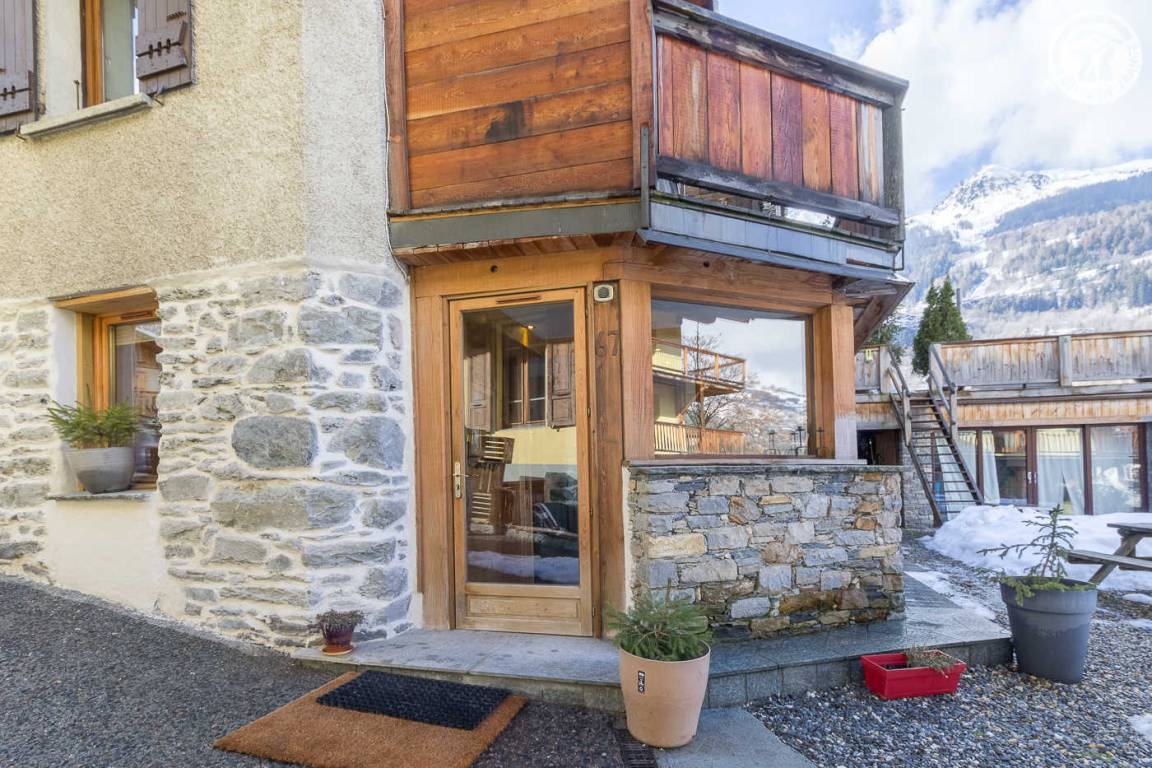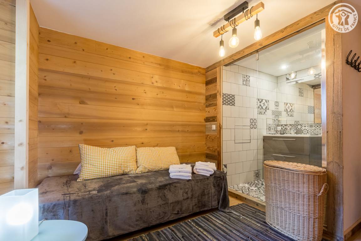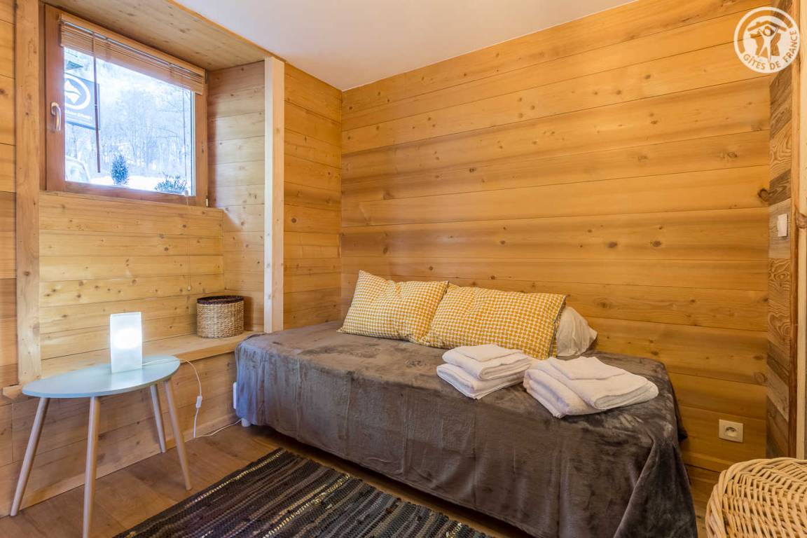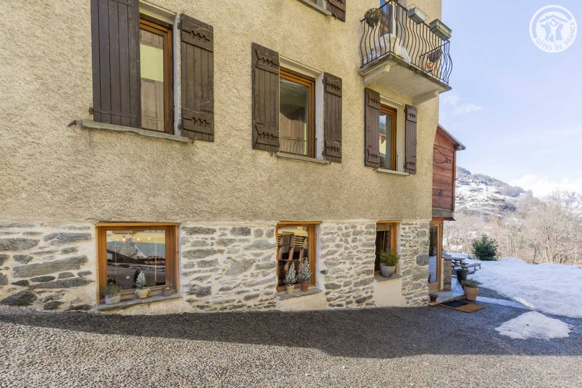 Im Haus der Besitzer (auch andere Beherbergungsbetriebe, ganzjährige Vermietung und eine Anwaltskanzlei): im Erdgeschoss mit separatem Eingang: Küchen-Wohnbereich, Schlafzimmer (2 Einzelbetten 90x200 können zu 1 Doppelbett 180x200 cm zusammengestellt werden ), WC, dann hintereinander, Badezimmer (Dusche) und großer Ankleideraum (1 Zustellbett 90x190 cm auf Anfrage). Gemeinsamer Ski- und Fahrradraum. Kleiner Garten mit gemeinsamer Schieferterrasse. Privater Parkplatz für 2 Autos. Kostenloser Shuttle zu den Resorts vor der Unterkunft (im Winter).