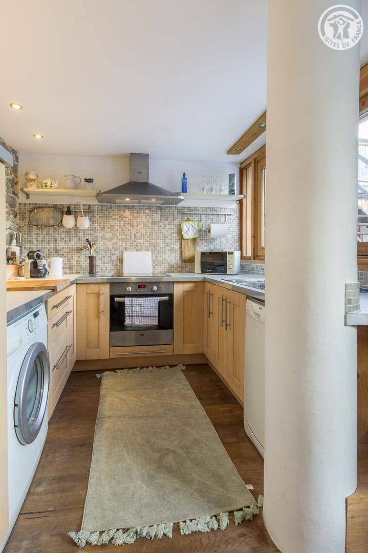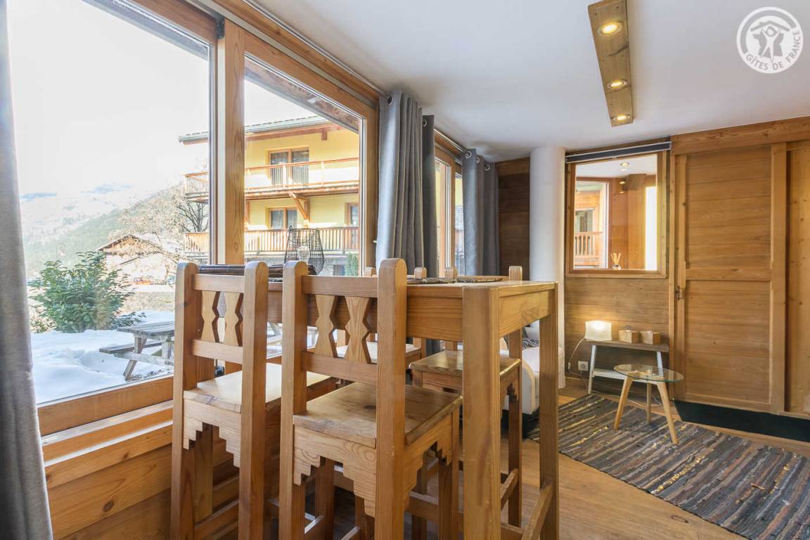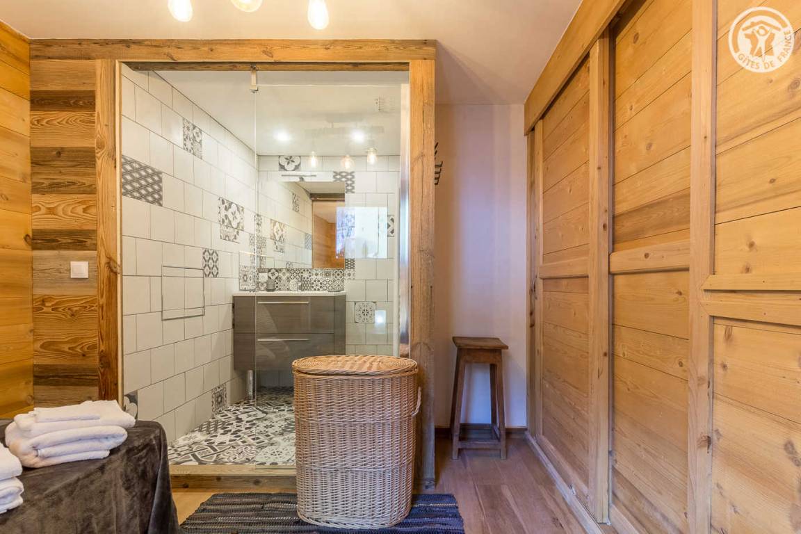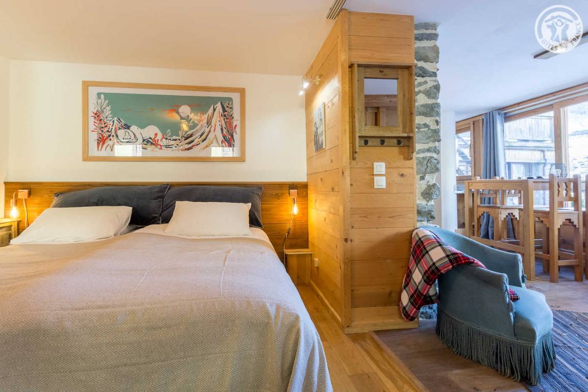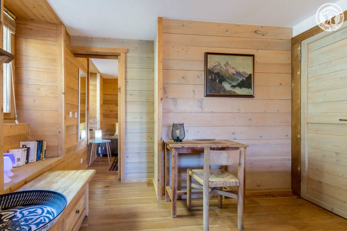 Im Haus der Besitzer (auch andere Beherbergungsbetriebe, ganzjährige Vermietung und eine Anwaltskanzlei): im Erdgeschoss mit separatem Eingang: Küchen-Wohnbereich, Schlafzimmer (2 Einzelbetten 90x200 können zu 1 Doppelbett 180x200 cm zusammengestellt werden ), WC, dann hintereinander, Badezimmer (Dusche) und großer Ankleideraum (1 Zustellbett 90x190 cm auf Anfrage). Gemeinsamer Ski- und Fahrradraum. Kleiner Garten mit gemeinsamer Schieferterrasse. Privater Parkplatz für 2 Autos. Kostenloser Shuttle zu den Resorts vor der Unterkunft (im Winter).