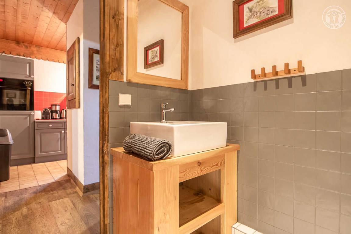 5 Gîtes in einem Chalet. Erdgeschoss: Wohnzimmer-Küche-Lounge, WLAN, Waschmaschine + Trockner in der gemeinsamen Waschküche, 2 Schlafzimmer ohne Öffnung nach außen (1 Doppelbett 160 x 200 cm / 2 Einzelbetten), 2 Badezimmer Wasser (davon eines mit a ebenerdige Dusche). Private Terrasse. Gemeinschaftlicher elektrischer Schuhtrockner. Bettwäsche inklusive + Betten gemacht. Skigebiet Ste-Foy-Tarentaise vor Ort, Villaroger-les Arcs/Paradiski 10 km, Tignes-Brévières/Espace Killy 16 km.