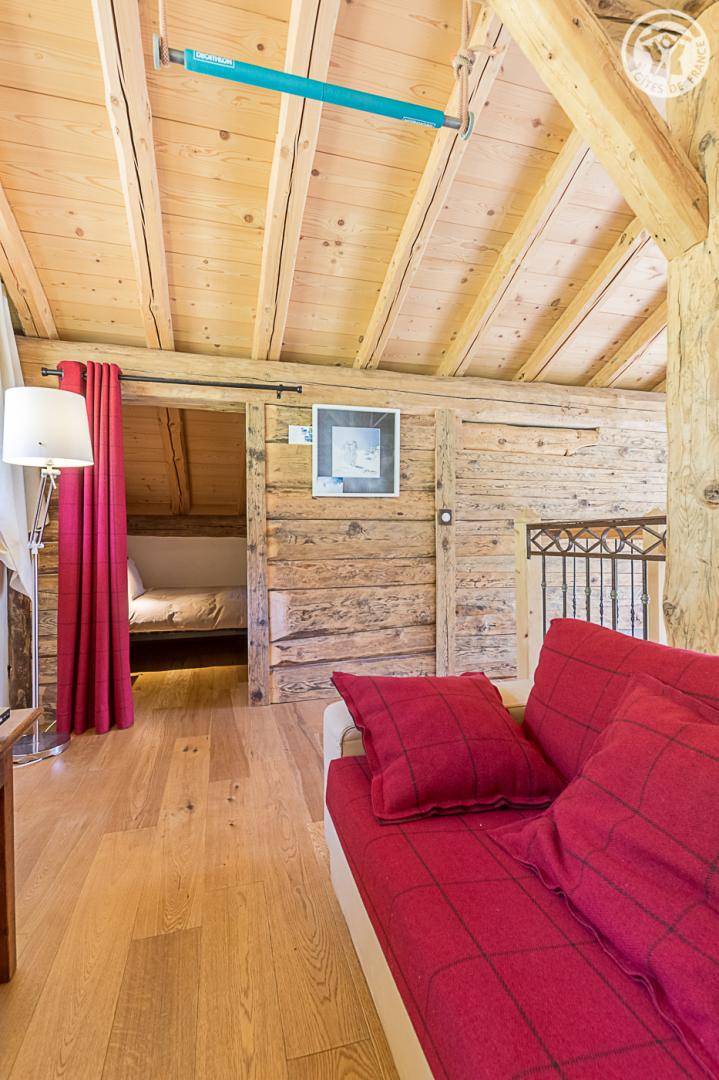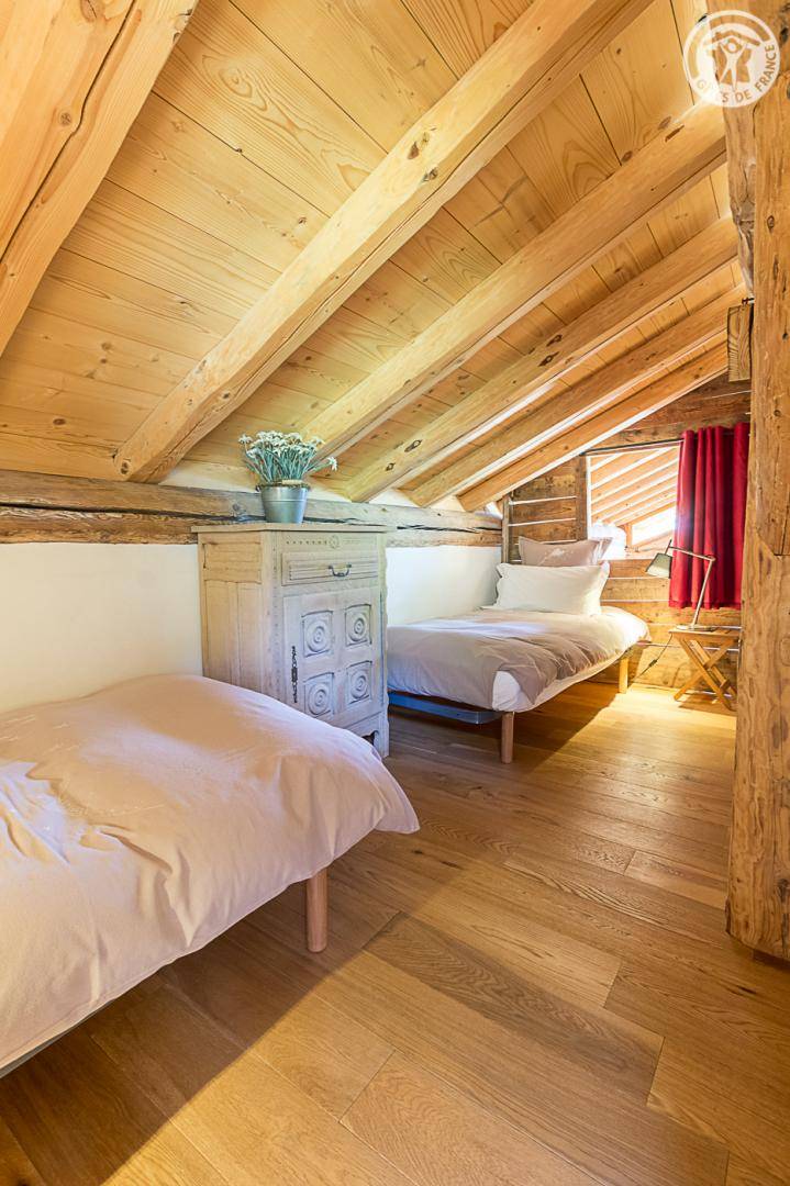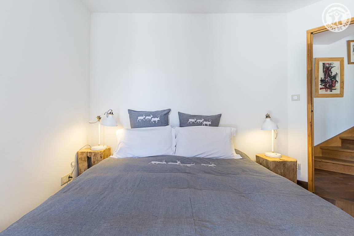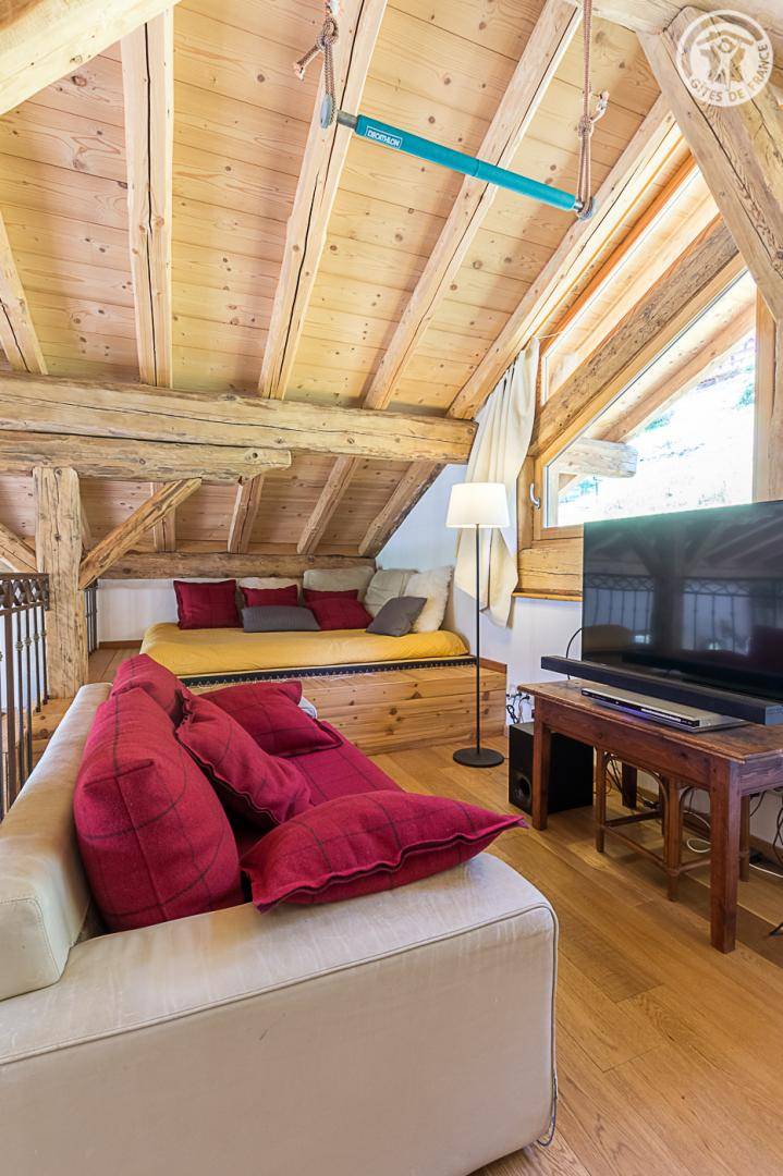Individuelles Chalet auf 3 Ebenen. 1. Stock (Zugang auf der gleichen Ebene wie das Haus an der Hangseite): Wohnzimmer-Küche mit Lounge-Bereich, Mezzanine mit leerem Raum zum Wohnzimmer, darunter ein Wohnzimmer mit Fernseher, Bluetooth-Soundbar, eine "Kabine "Schlafzimmer mit nur einem Durchgang zum Wohnzimmer (2 Einzelbetten), einem Duschbad und separatem WC (Waschbecken). Erdgeschoss: 3 Schlafzimmer mit Zugang zu einer Terrasse (2 Betten 90 x 200 cm, die zu 1 Doppelbett 180 x 200 cm kombiniert werden können / 1 Doppelbett 160 x 200 cm / 1 Doppelbett 160 x 200 cm), ein Badezimmer (begehbar -in Dusche, Bad und WC). Gesamtwohnfläche: 113 m² Dachgeschoss inklusive. Balkon-Terrasse. Kleiner flacher Platz in Naturrasen.