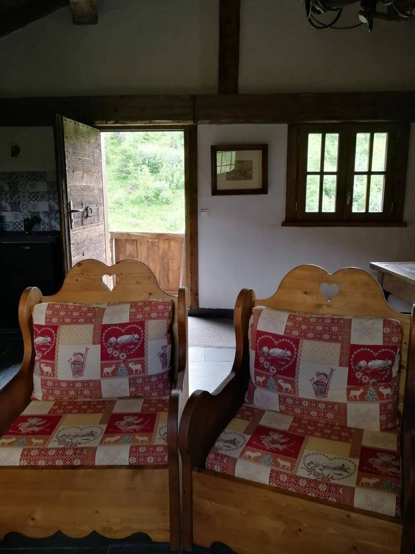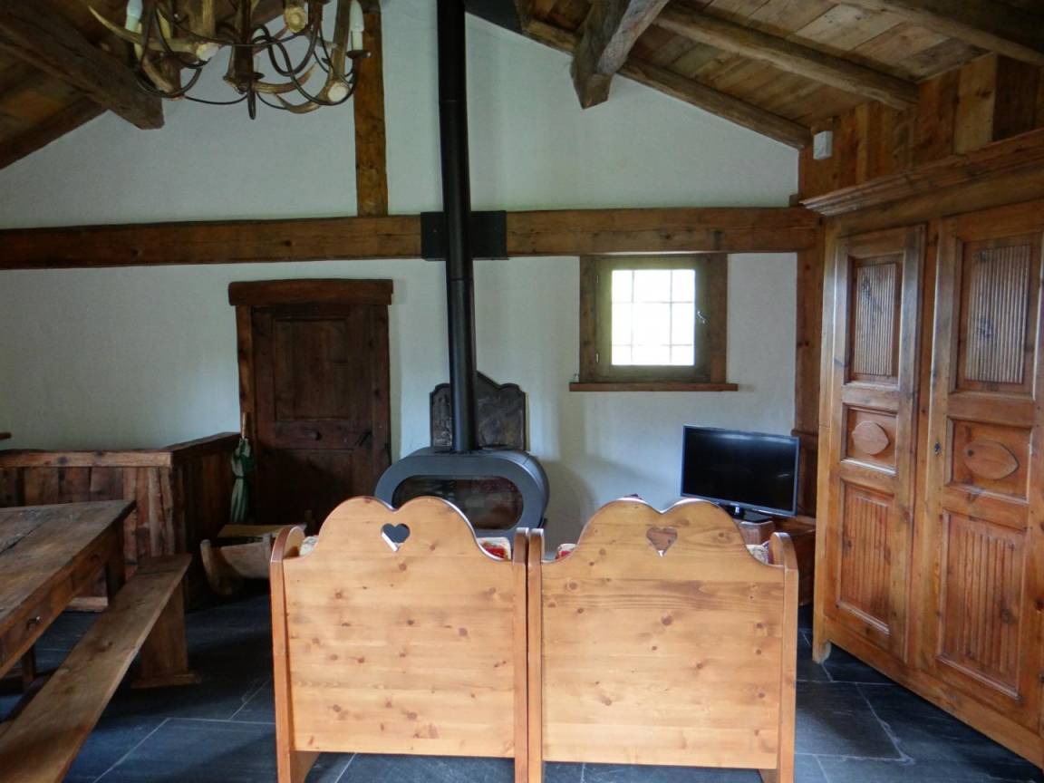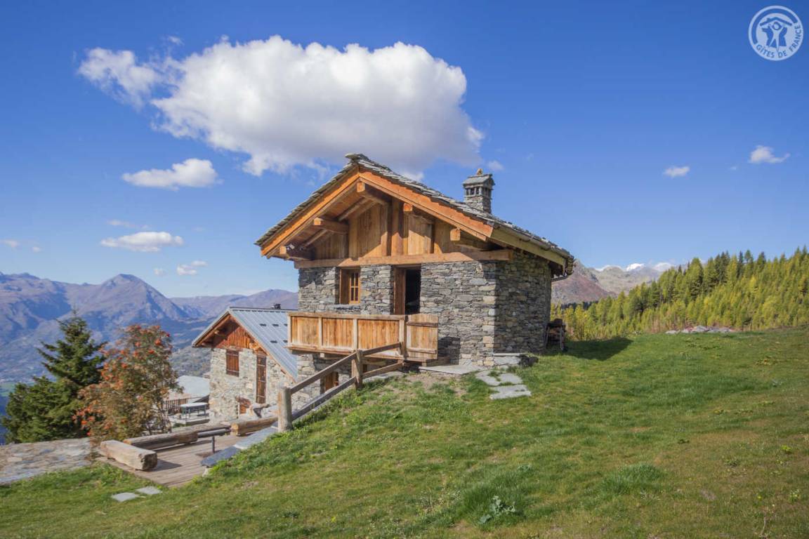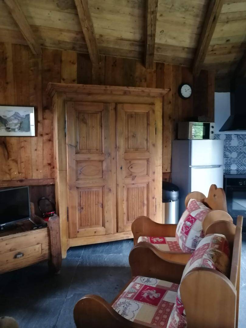 Alpenchalet (Zugang über eine steinige und befahrbare Straße für 6 km). Der Eigentümer bietet bei Bedarf den Transfer zur Almhütte bei der Ankunft an. Erdgeschoss: 2 Schlafzimmer (1 Doppelbett 140 x 190 cm / 2 Einzelbetten 80 x 190 cm), ein Badezimmer (ebenerdige Dusche mit WC). 1. Stock: Wohnzimmer-Küche (Kühlschrank und Kochplatten), Sitzecke, Kamin (Holz inklusive). Terrasse und flach abfallendes Grundstück. Bettwäsche inklusive. Parkplatz unterhalb des Chalets in 50 m Entfernung. Chalet geöffnet von Juni bis September.