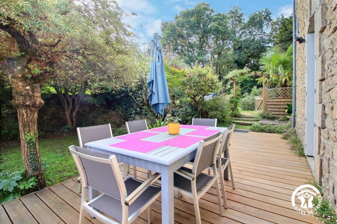 „This is a well equipped gite with three good sized bedrooms, a really large lounge and dining area. The kitchen is very well appointed and has ample room for a large table and six chairs. Outside there is large, decked patio, nice furniture and a small but well planted and mature garden. We were really impressed by "Les Camillias" and thoroughly enjoyed our week's stay. Carnac, Quiberon & Lorient are within easy reach and the countryside, beaches and estuaries offer some really nice walks and views. Owners Christiane and Rene live opposite and are friendly and generous. Speaking some French will help! St Helene has very limited facilities but there are medium sized supermarkets within five to ten minutes drive. The restaurant L'iguane which is a five minute stroll is really good.“