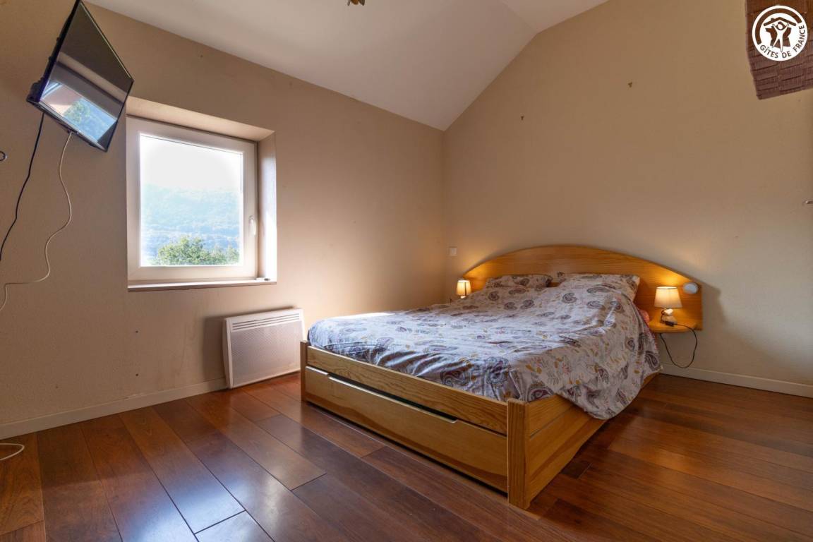 Schloss mit 3 nebeneinanderliegenden Ferienhäusern in einem renovierten Flügel. Zugang über einen Außengang. Ferienhaus auf 2 Ebenen (Erdgeschoss + 1. Stock): Wohnküche mit Sitzecke (1 Schlafsofa für 2 Personen 140 x 190 cm), 1 Schlafzimmer im Zwischengeschoss mit Zugang zum Wohnzimmer (1 Doppelbett 140 x 190 cm), Duschraum (ebenerdige Dusche mit WC). Gemeinsames Grundstück + private Terrasse. Gemeinsamer Parkplatz für die 3 Ferienhäuser in 80 m Entfernung mit der Möglichkeit, das Auto vor den Ferienhäusern auszuladen. Skigebiet Le Granier 25 km, La Féclaz 31 km. See 10 km. Schwimmbad 4 km. Thermalbäder Challes-les-Eaux 12 km. Golf Apremont 14 km.