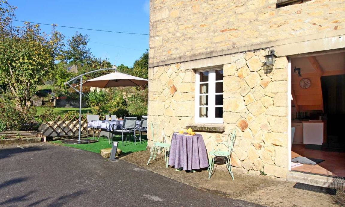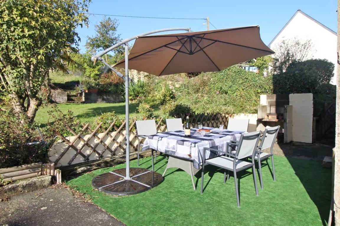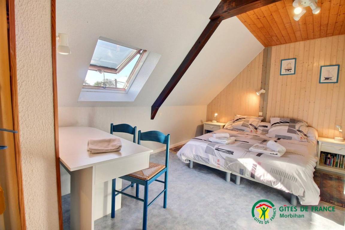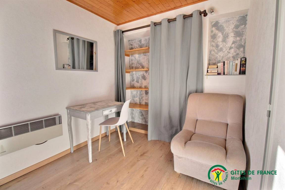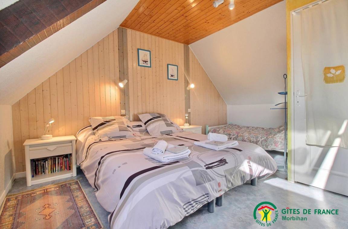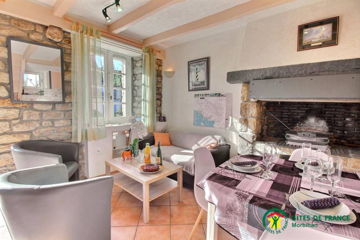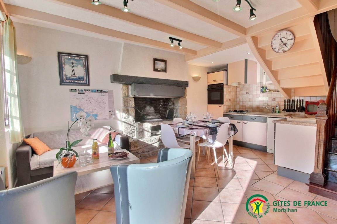 Gite adjoining another accommodation, 500m from the little town of SAINTE-HELENE-SUR-MER. Living room/kitchen corner, 2 bedrooms (1 double and 2 single beds), bathroom, 2 wc, electric heating. Garden 200m², garden furniture, BBQ, shared courtyard with swings and bike shelter.