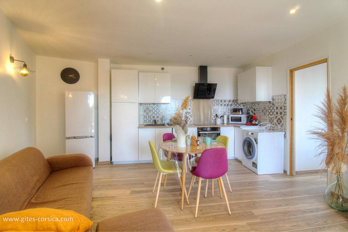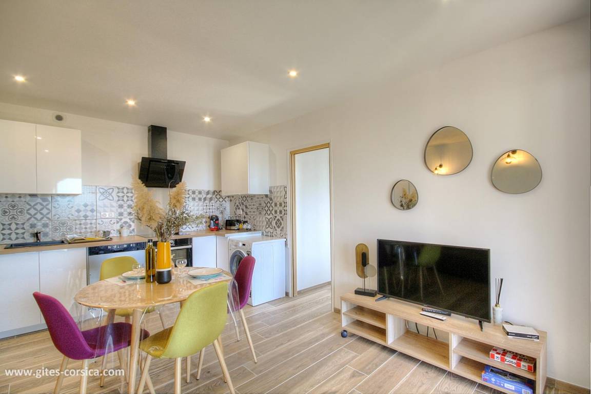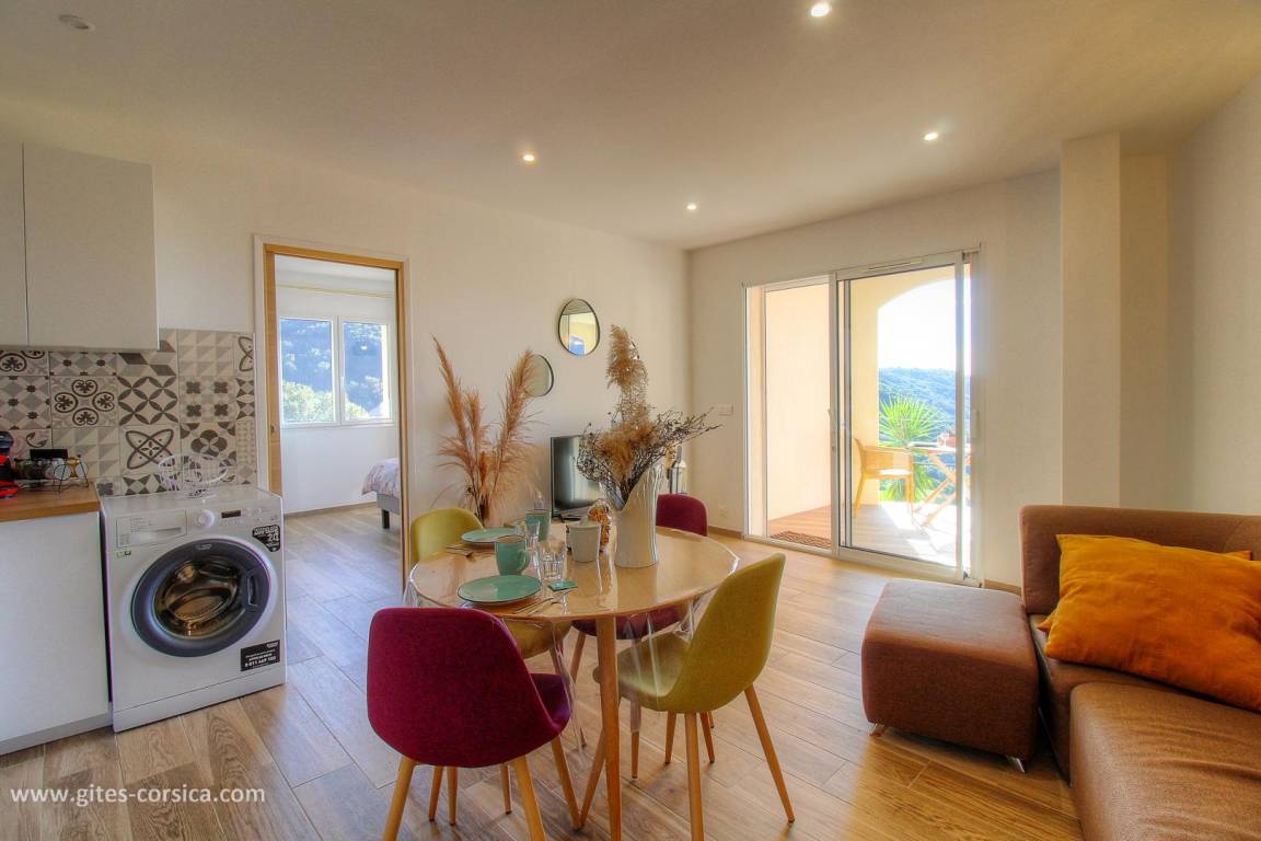 „We have hugely enjoyed our stay with François in St Lucie, he was very welcoming and helpful. The apartment was perfect for a couple, a generous kitchen/livingroom and a very nice bedroom with a modern bathroom (no door but behind a wall). The apartment was clean and well-lit, and the terrace had the best possible view, a picture postcard photo opportunity in any weather, any time of day. St Lucie, around 10 mins by foot below the apartment is a lovely village with lots to see, and is is perfectly situated between the cities and the beaches in the west (Proprianu, Ajaccio, but also Bonifacio in the south), and the Col de Bavella with its many hiking routes to the east. We'd love to come back soon!“
