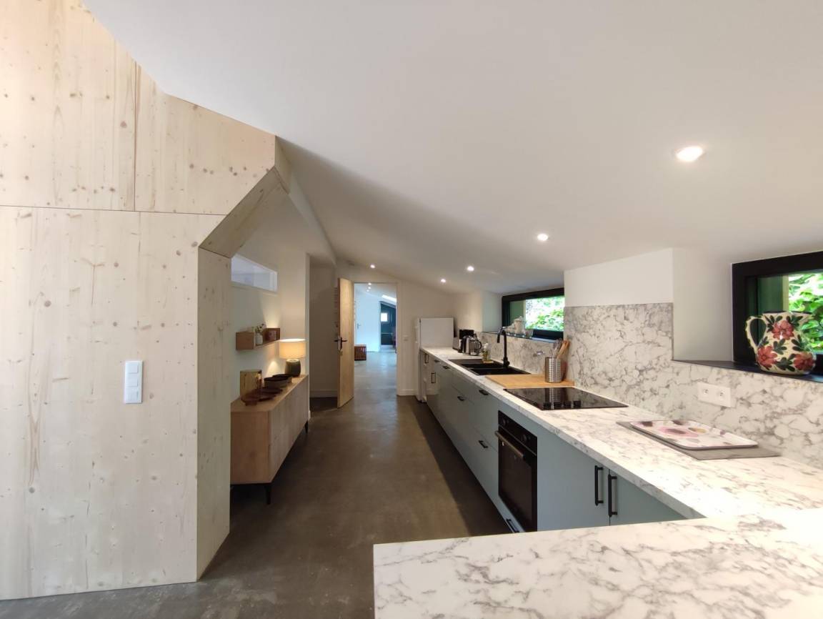 „C'est un gîte bien équipé et très propre. Le confort dans les chanmbres, la cuisine etc. est parfait. Une chose nous frappait: Dans la cuisine il n'y a pas de hotte d'aspiration. L'effet est que les vapeurs et odeurs de la cuisson restent dans la cuisine et le salon.“