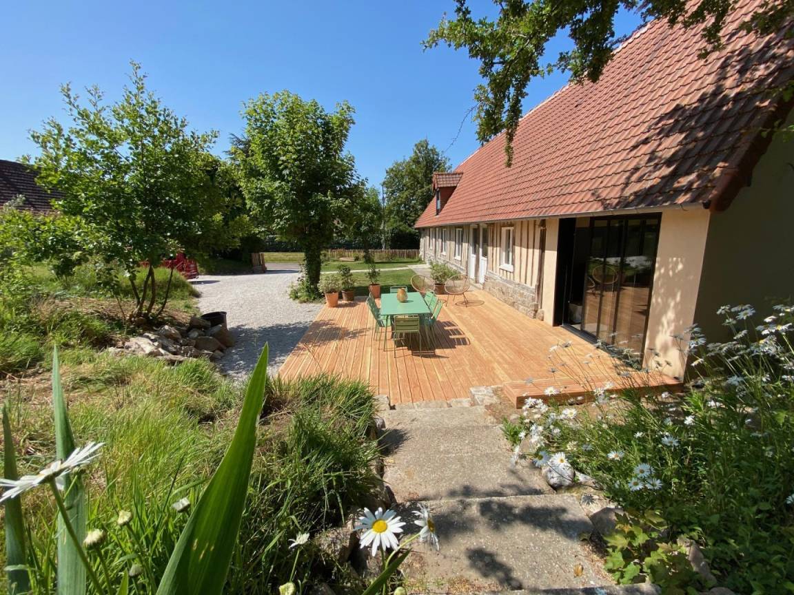 „Nous avons passé une excellente semaine en Normandie et le confort du gite des Marguerites y a largement contribué. Le gite est parfaitement aménagé et équipé. On s'y sent bien immédiatement. Il est très spacieux ce qui est très agréable quand on y séjourne en famille. L’extérieur est également extra (grande terrasse, 2 jardins, le bbq...). Il est proche de la plage et bien situé pour de nombreuses balades. Et avec des propriétaires très sympathiques et arrangeants (horaire d'arrivée aménagé en fonction de nos besoins, bouteille de cidre et délicieux caramel de pomme offerts à notre arrivée). On a qu'une envie c'est d'y retourner pour explorer encore cette magnifique région.“