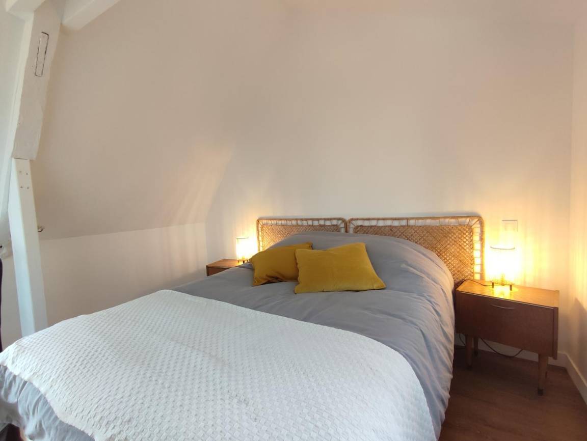 „C’est une maison Normande typique et ancienne, mais remise au goût du jour avec une touche moderne. La maison est équipée de tout le confort nécessaire. Il y a également largement assez de matériel de cuisine. Les lits sont confortables. Sa situation, à environ 1 km de la plage, est un véritable atout.“