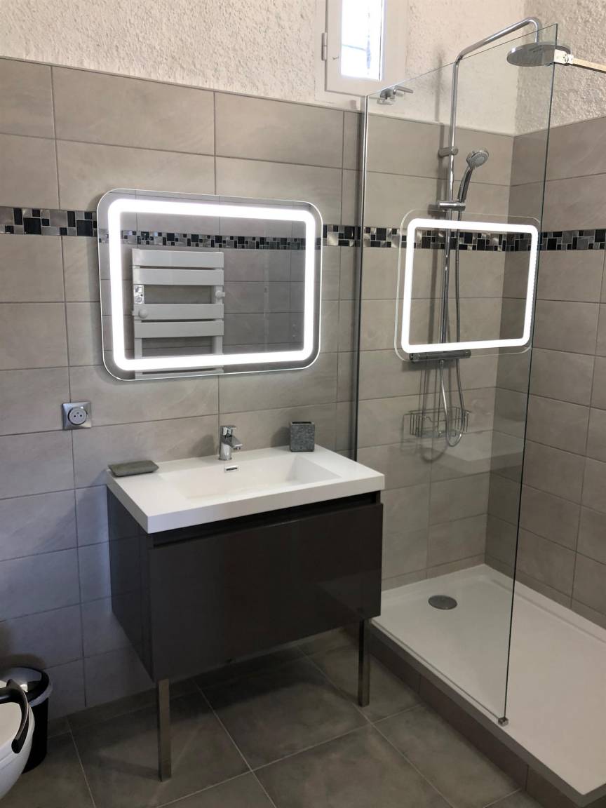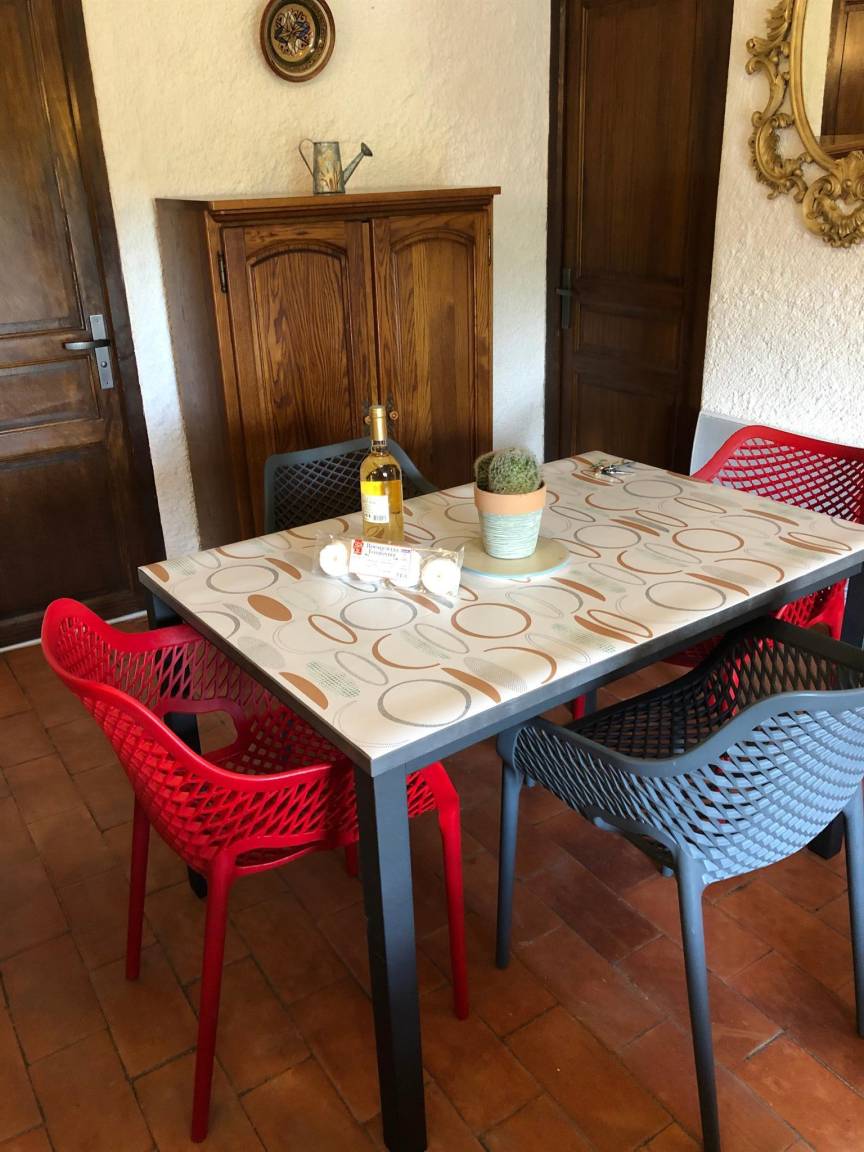„Le logement était très bien, l'accueil chaleureux. Seul bémol: Le bruit de la route très passagère devant le logement, même la nuit!Le logement à l'etage permet difficilement de manger sur la table à l'extérieur car il faut monter et descendre les étages avec ses affaires. lorsqu'on est à 2 couples, il serait bien d'avoir 2 trousseaux de clés pour gérer les portails.“