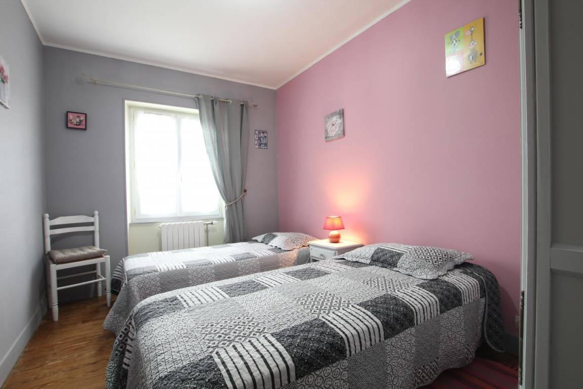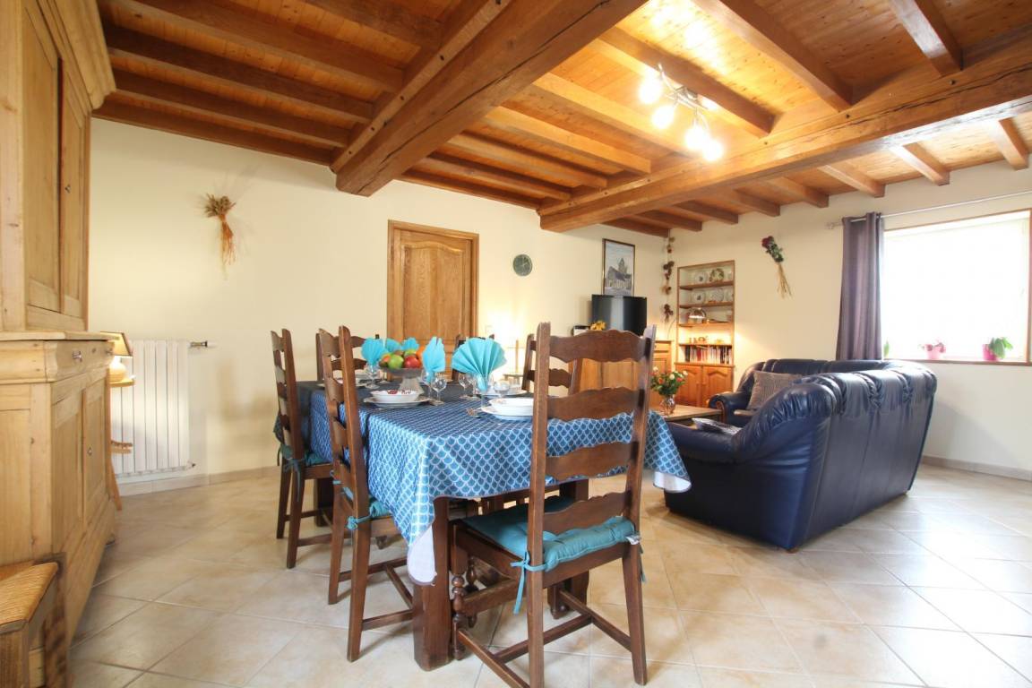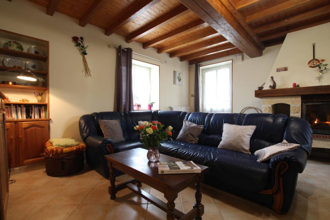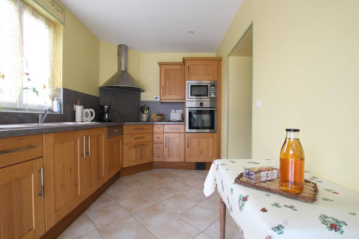 Doppelhaushälfte neben dem Haus des Eigentümers. Erdgeschoss: Wohnzimmer mit Kamin (TV, ADSL-Internet, Radio, DVD-Player). Küche (Cerankochfeld, Mikrowelle, Elektroherd, Geschirrspüler, Kühl-/Gefrierkombination). Schlafzimmer 1 (Bett 160 x 200 cm). Duschbad (ebenerdige Dusche). WC. Hauswirtschaftsraum (Waschmaschine). Obergeschoss: Schlafzimmer 2 (Bett 140 x 190 cm). Schlafzimmer 3 (zwei Betten 90 x 190 cm). Duschbad mit WC (Duschkabine). Privater, umzäunter Garten. Kieshof mit manuellem Tor. Picknicktisch. Liegestühle. Grill. Parkplatz. Zentralheizung über Luftwärmepumpe (gegen Aufpreis). Zwei Körbe Brennholz vorhanden. Bettwäsche und Handtücher können gemietet werden. Reinigung optional. Babyausstattung (Reisebett und Hochstuhl).