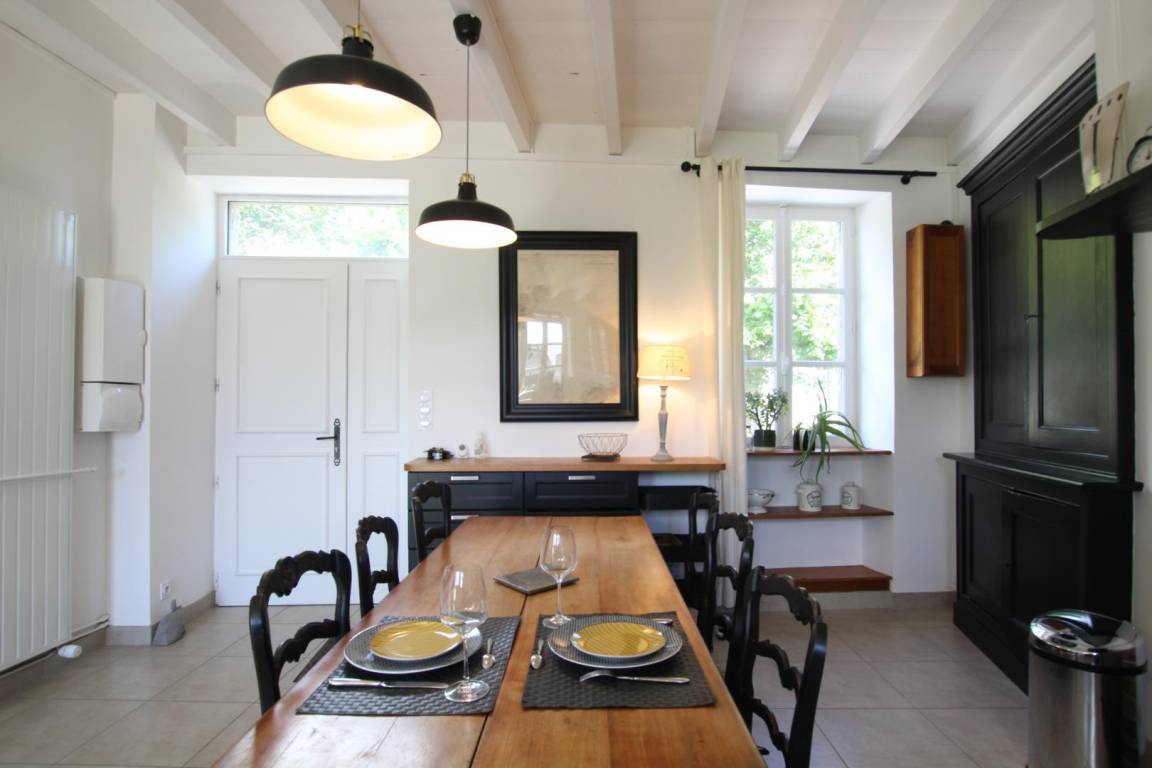 Dorfhaus neben einem anderen Haus. Küche (Backofen, Induktionskochfeld, Mikrowelle, Geschirrspüler, Kühlschrank mit Gefrierfach, Espressomaschine), Büro (Internet, Bibliothek), Wohnzimmer (TV), Waschküche (Waschmaschine), separate Toilette und Badezimmer. Im Obergeschoss Schlafzimmer 1 (3 Betten 90 x 190), Badezimmer mit Toilette, Schlafzimmer 2 (1 Bett 160 x 200) mit Ankleidezimmer und eigenem Badezimmer mit Toilette. Babyausstattung auf Anfrage. Bettwäsche und Haushaltswäsche werden gestellt. Die Betten sind bei der Ankunft bezogen. Ölzentralheizung inklusive. Alle Gebühren inklusive. Reinigungsservice extra. Privater umzäunter Garten. Terrasse. Gartenmöbel. Liegestühle. Elektrische Plancha. Nebenraum. Parken an der Straße.